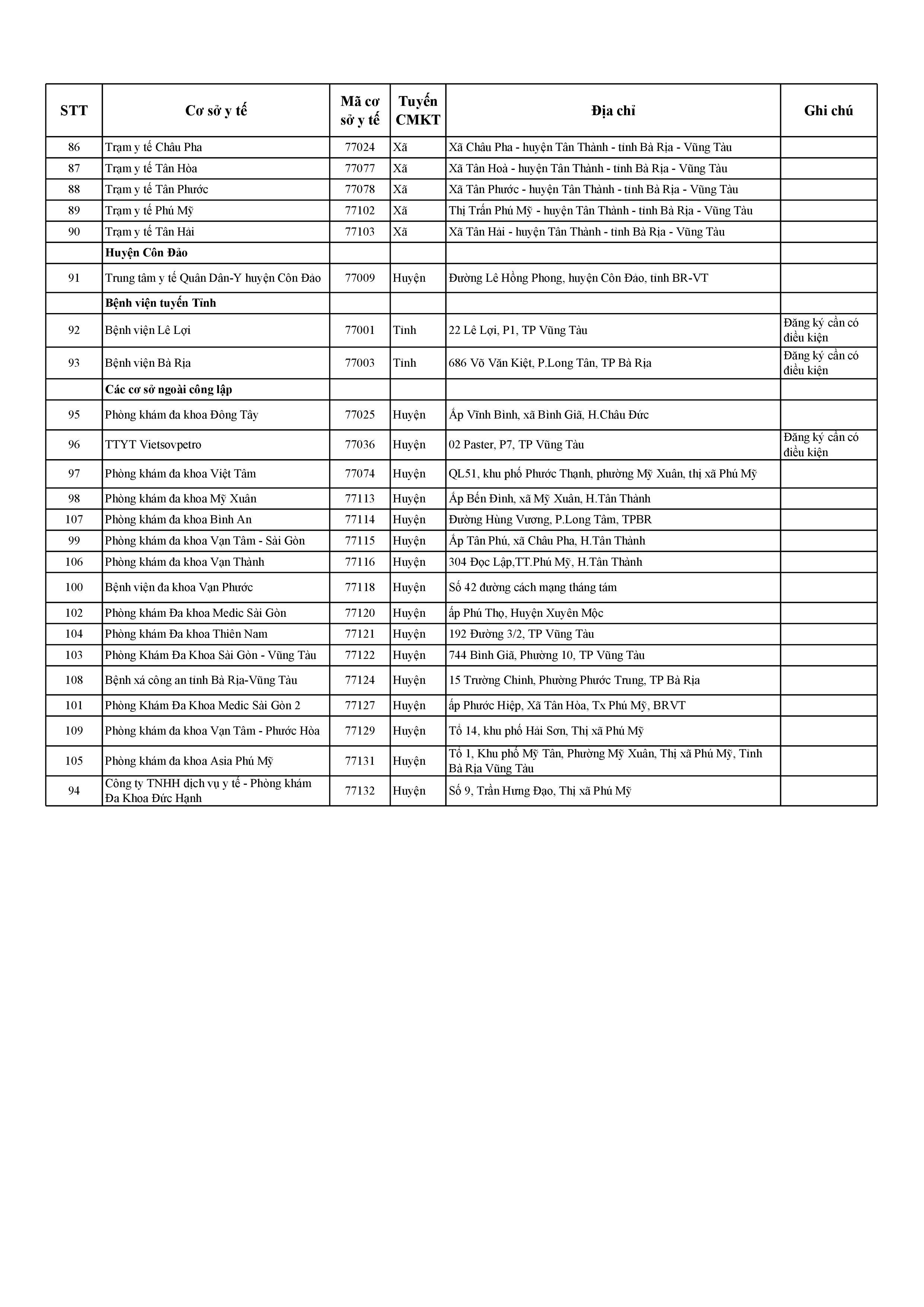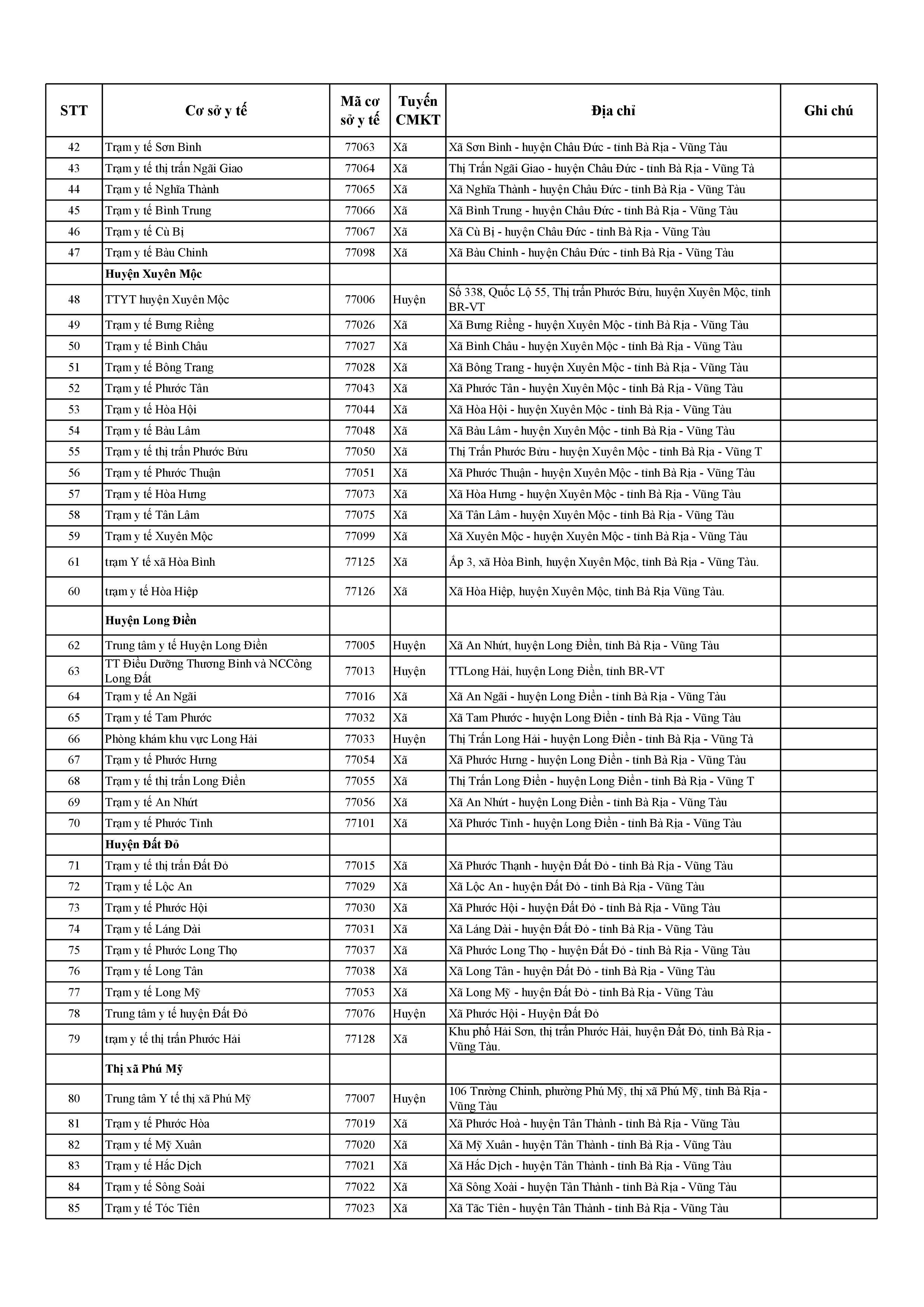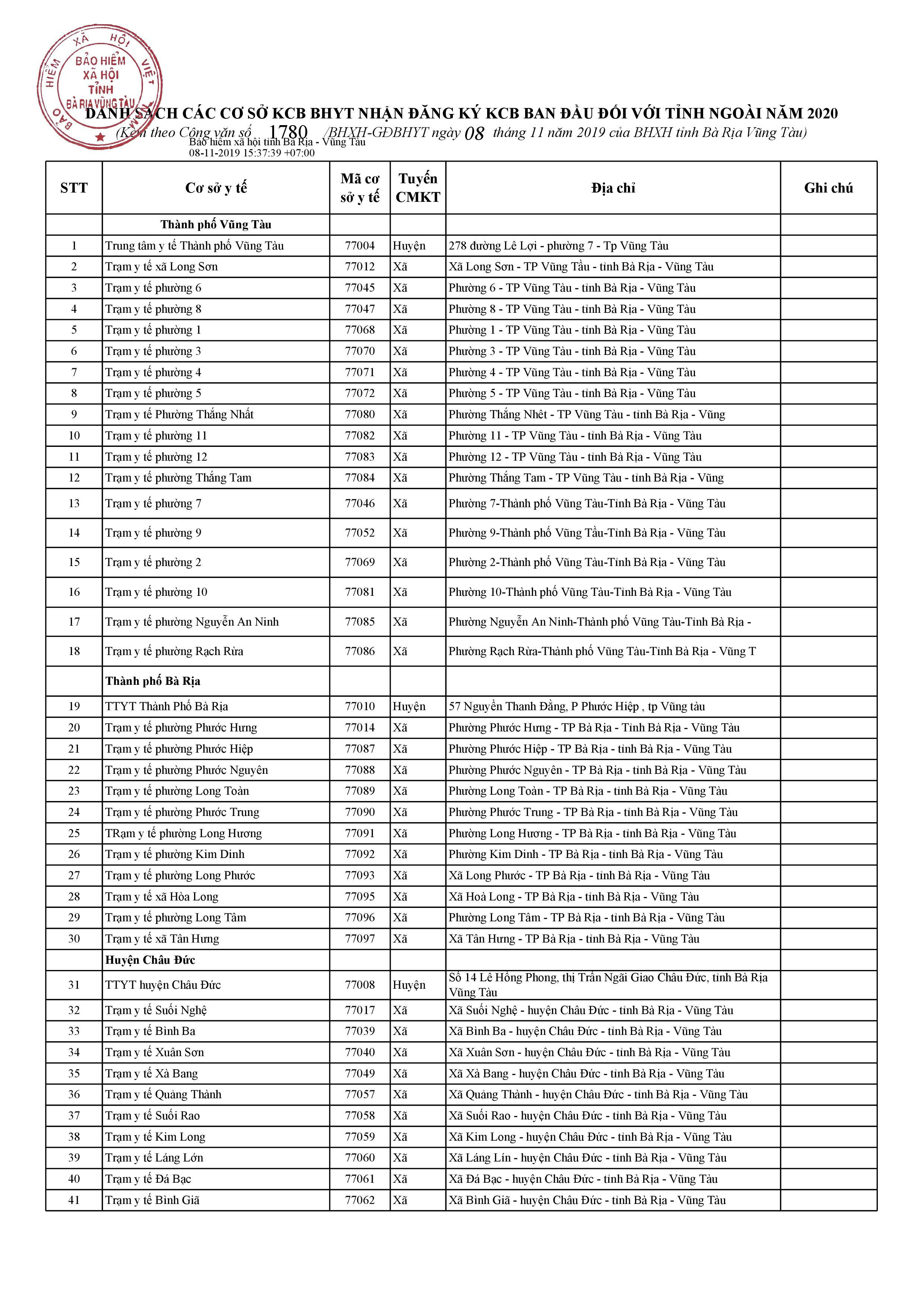 Bà Rịa - Vũng Tàu KCB Ngoại tỉnh năm 2020