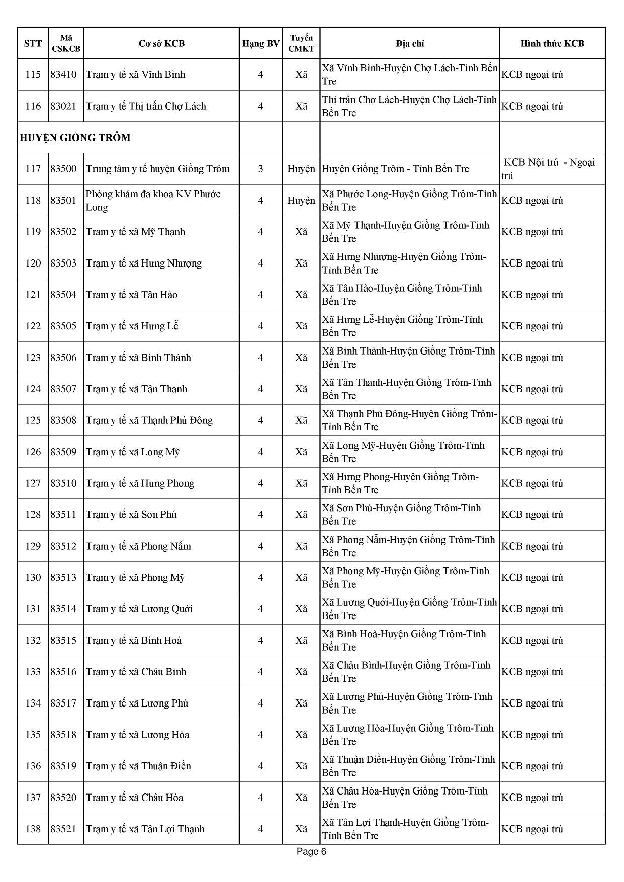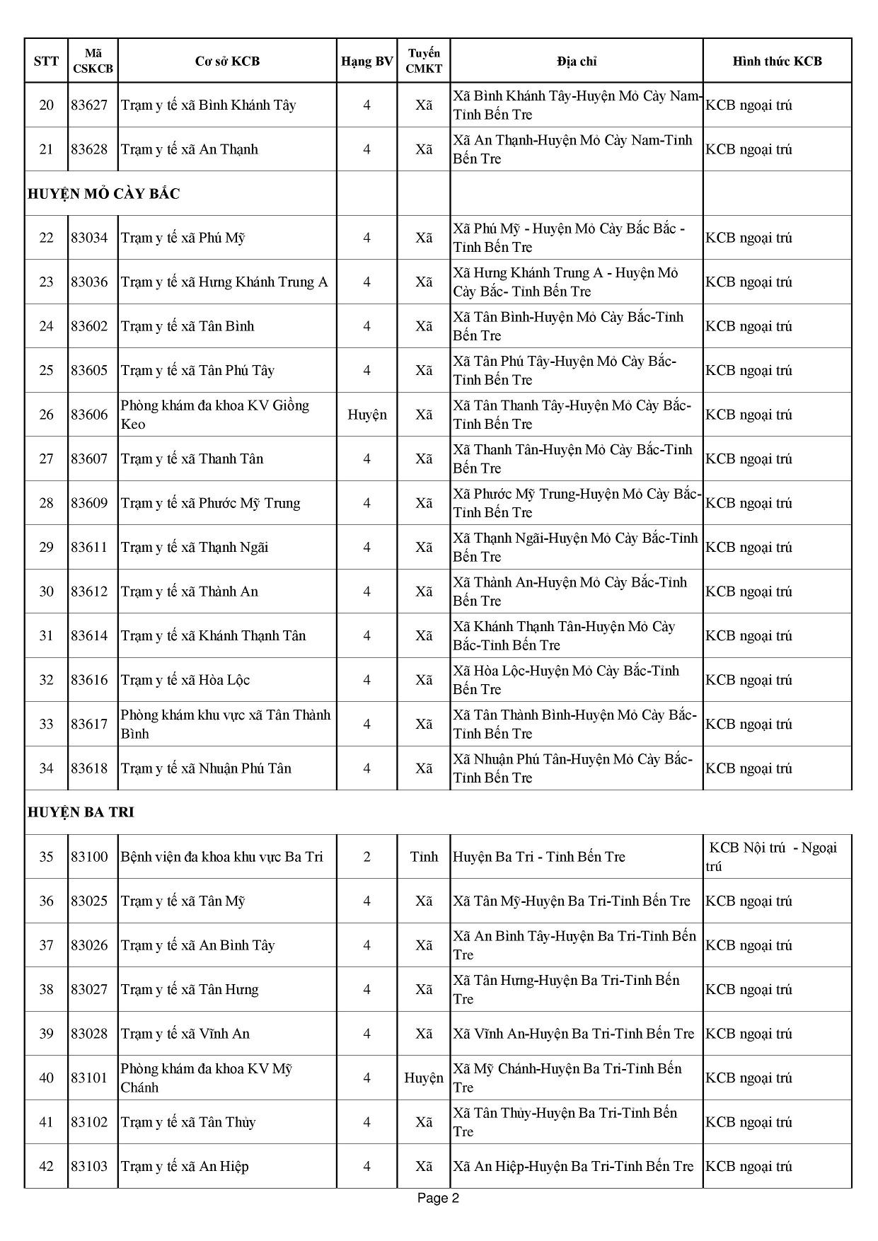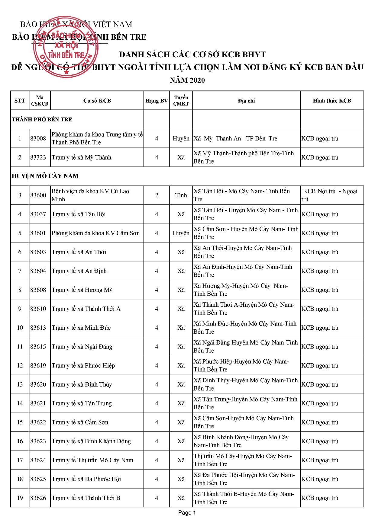 Bến Tre KCB Ngoại tỉnh năm 2020