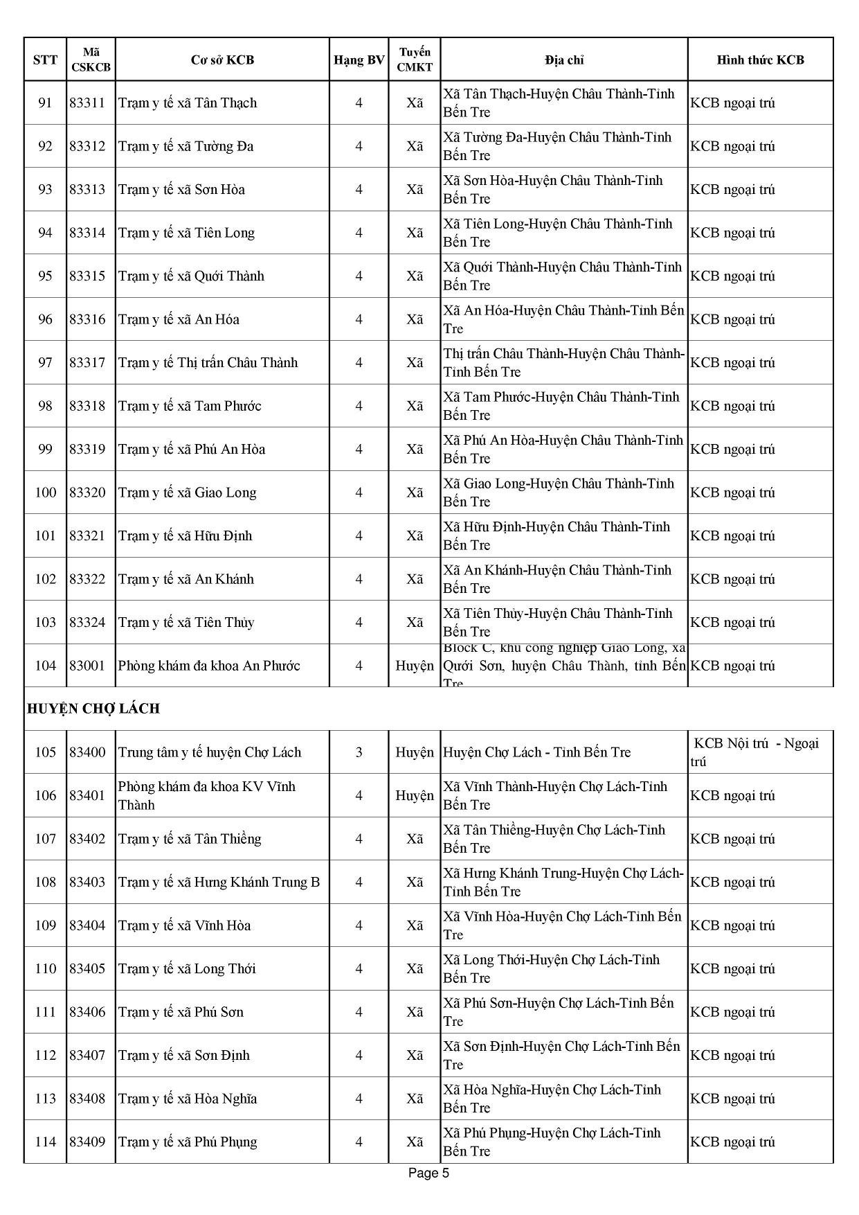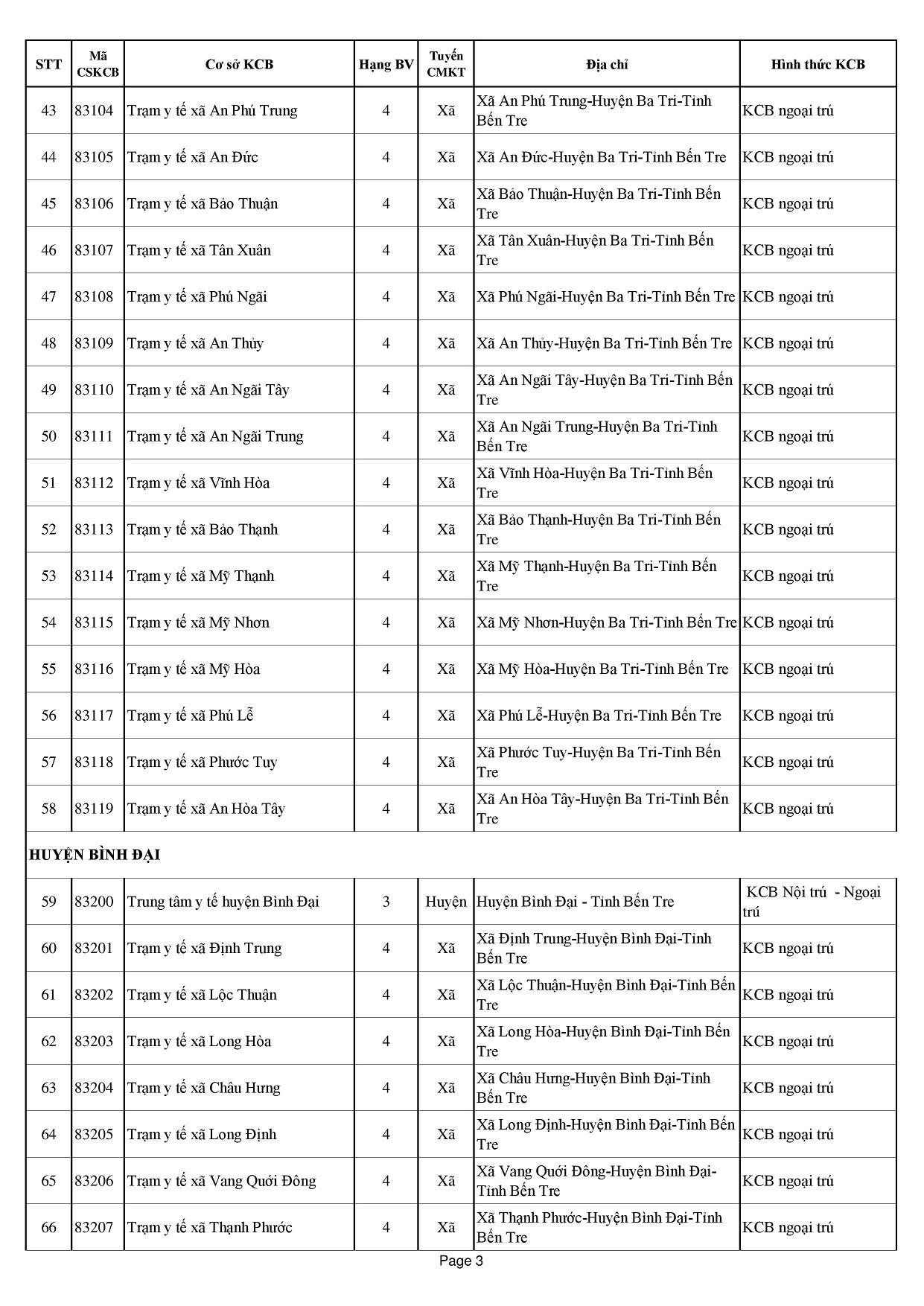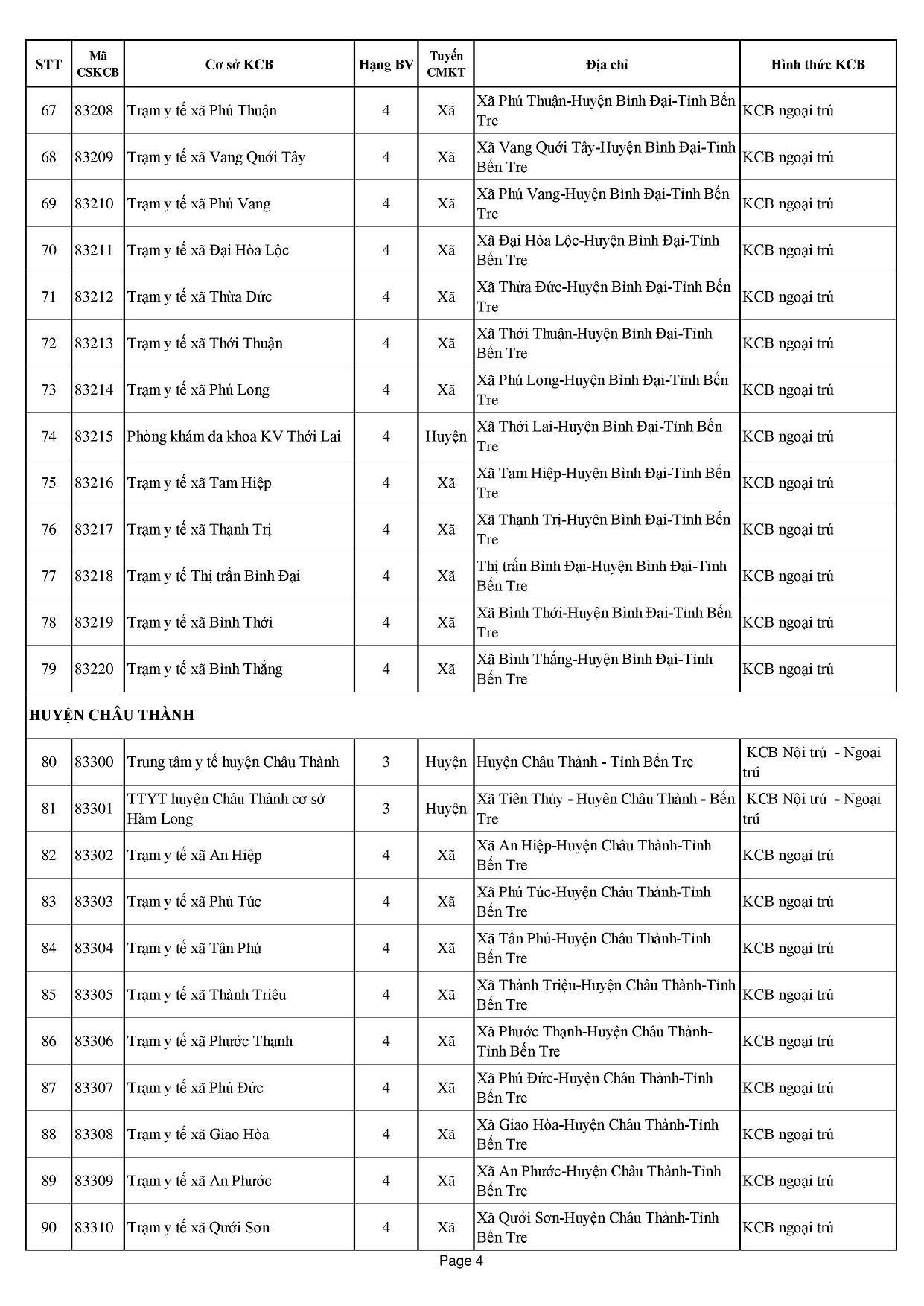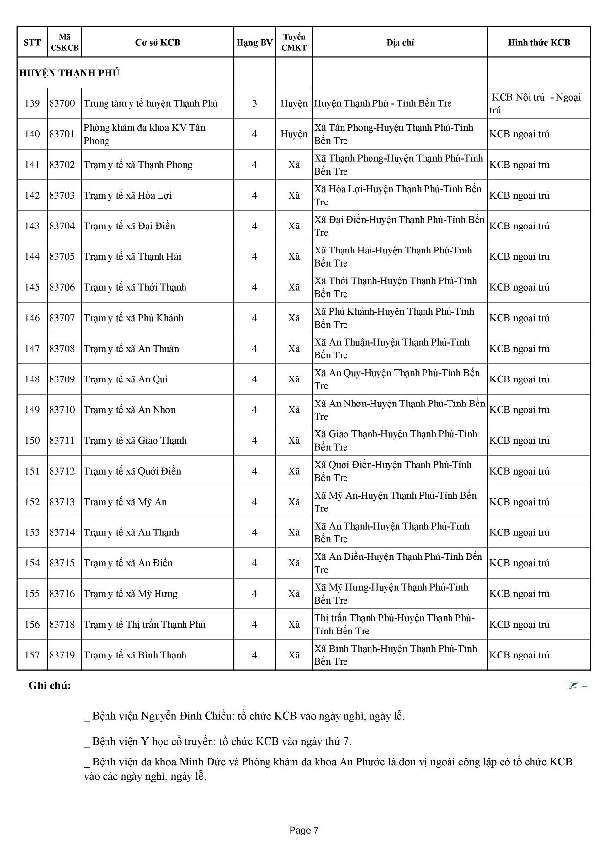 Bến Tre KCB Ngoại tỉnh năm 2020