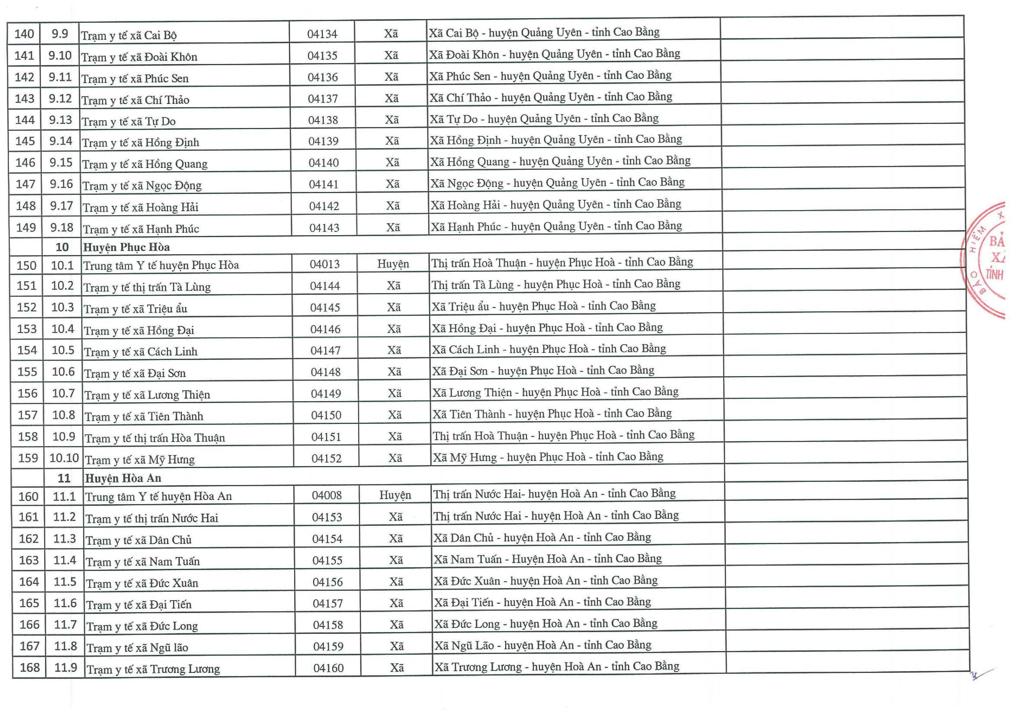 Hệ thống mã cơ quan BHXH toàn quốc
