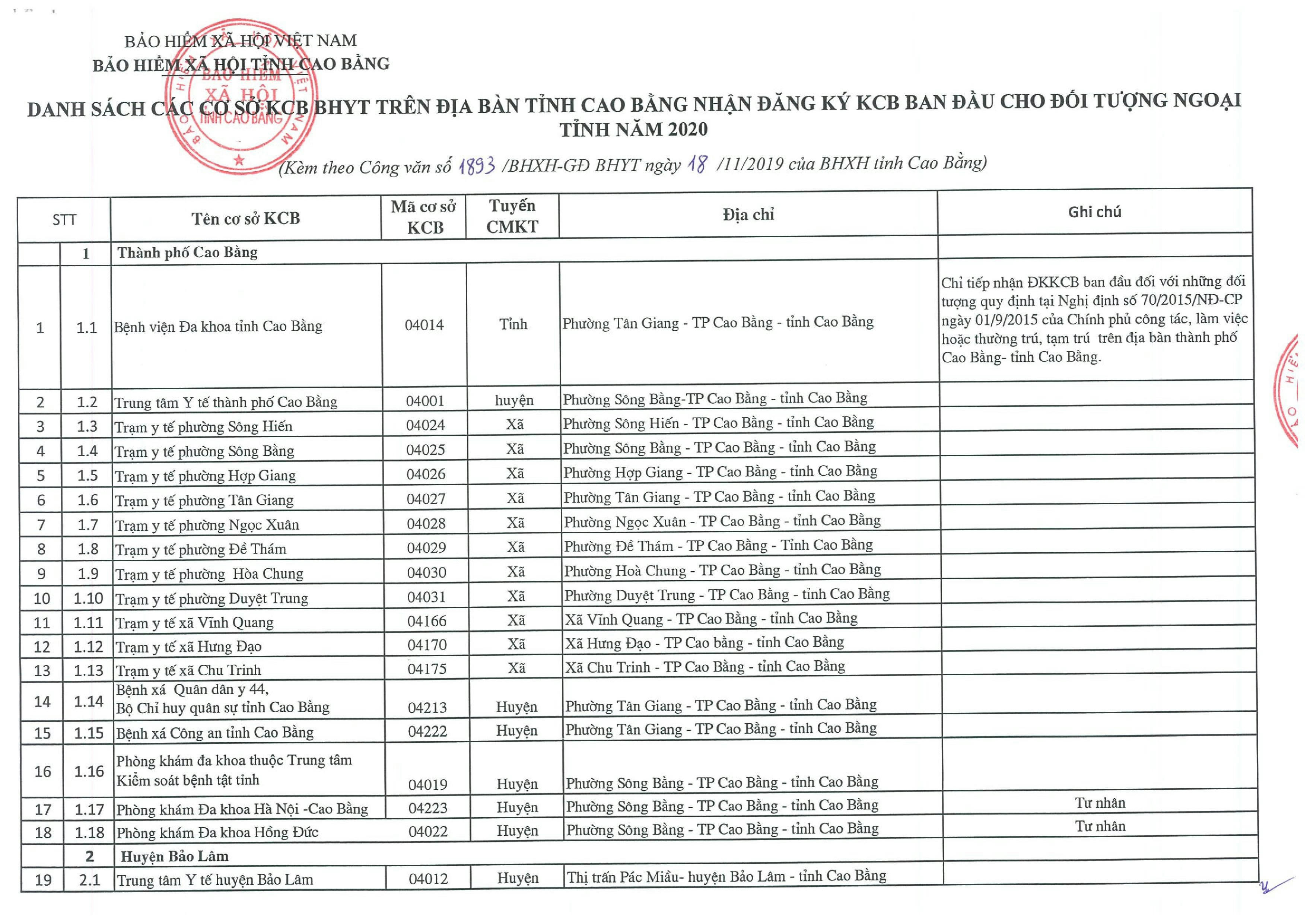 Cao Bằng KCB Ngoại tỉnh năm 2020