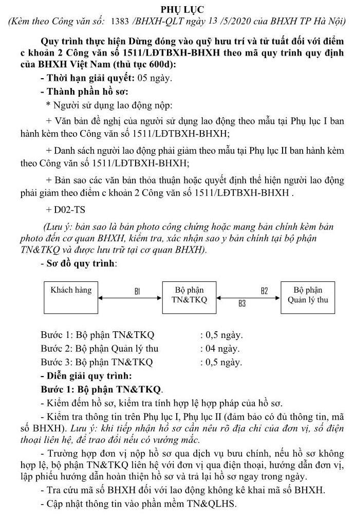 b) Về hồ sơ, trình tự thực hiện đối với trường hợp nêu tại điểm c khoản 2 Công văn số 1511/LĐTBXH-BHXH: người sử dụng lao động và cơ quan BHXH thực hiện theo phụ lục kèm theo văn bản này.