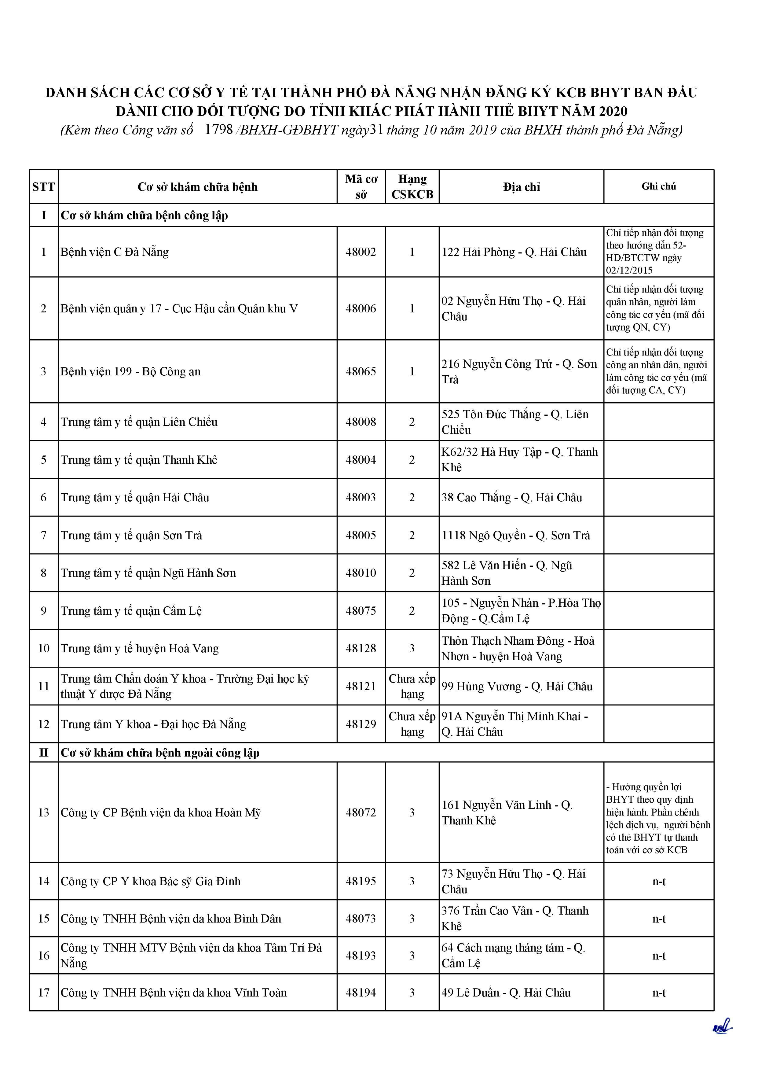 Danh sách Bệnh viện KCB BHYT ban đầu trên Toàn quốc