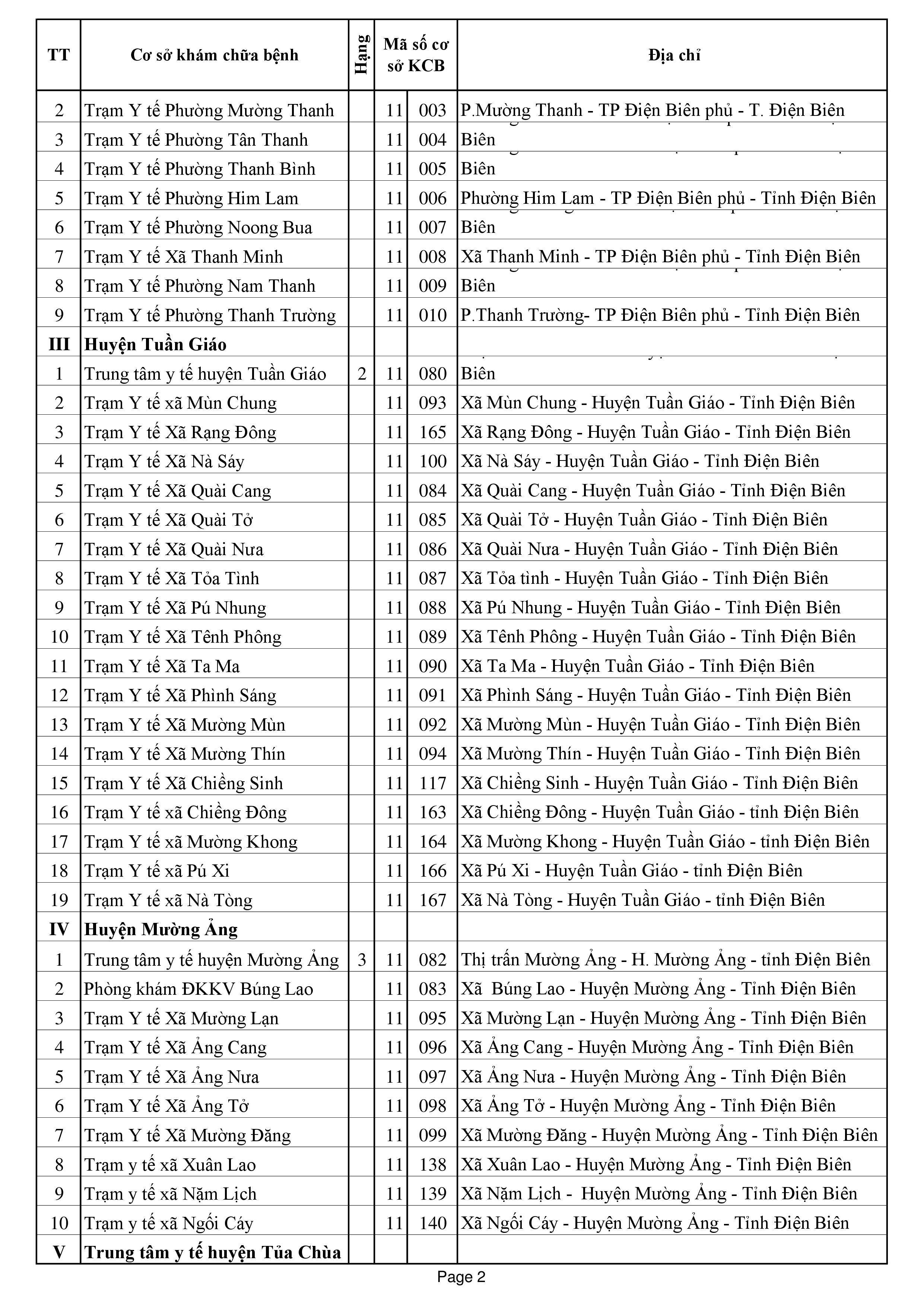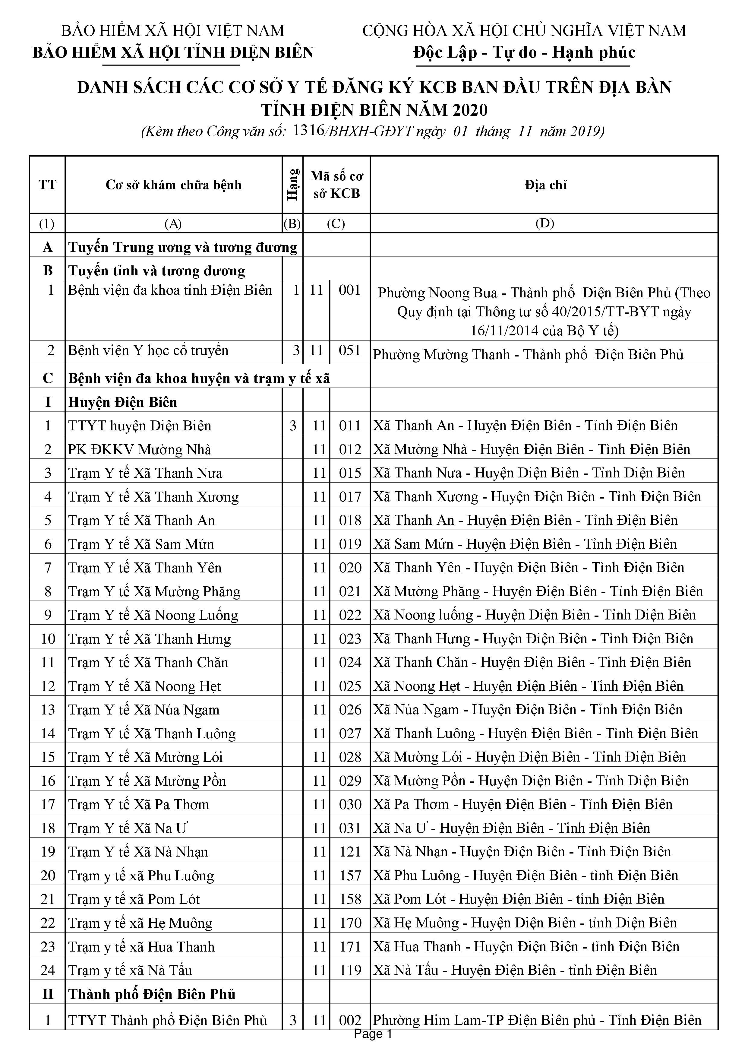 Danh sách Bệnh viện KCB BHYT ban đầu trên Toàn quốc