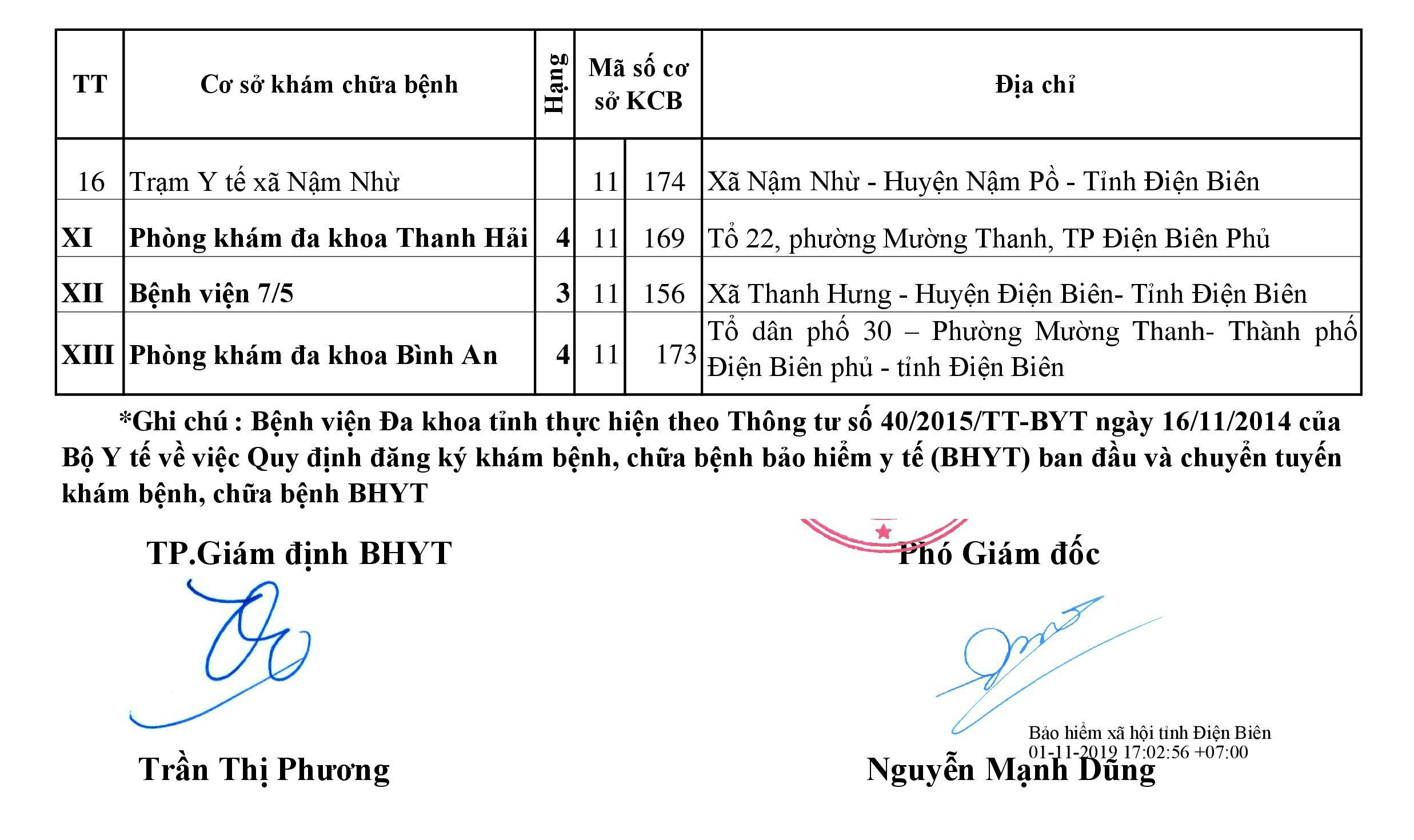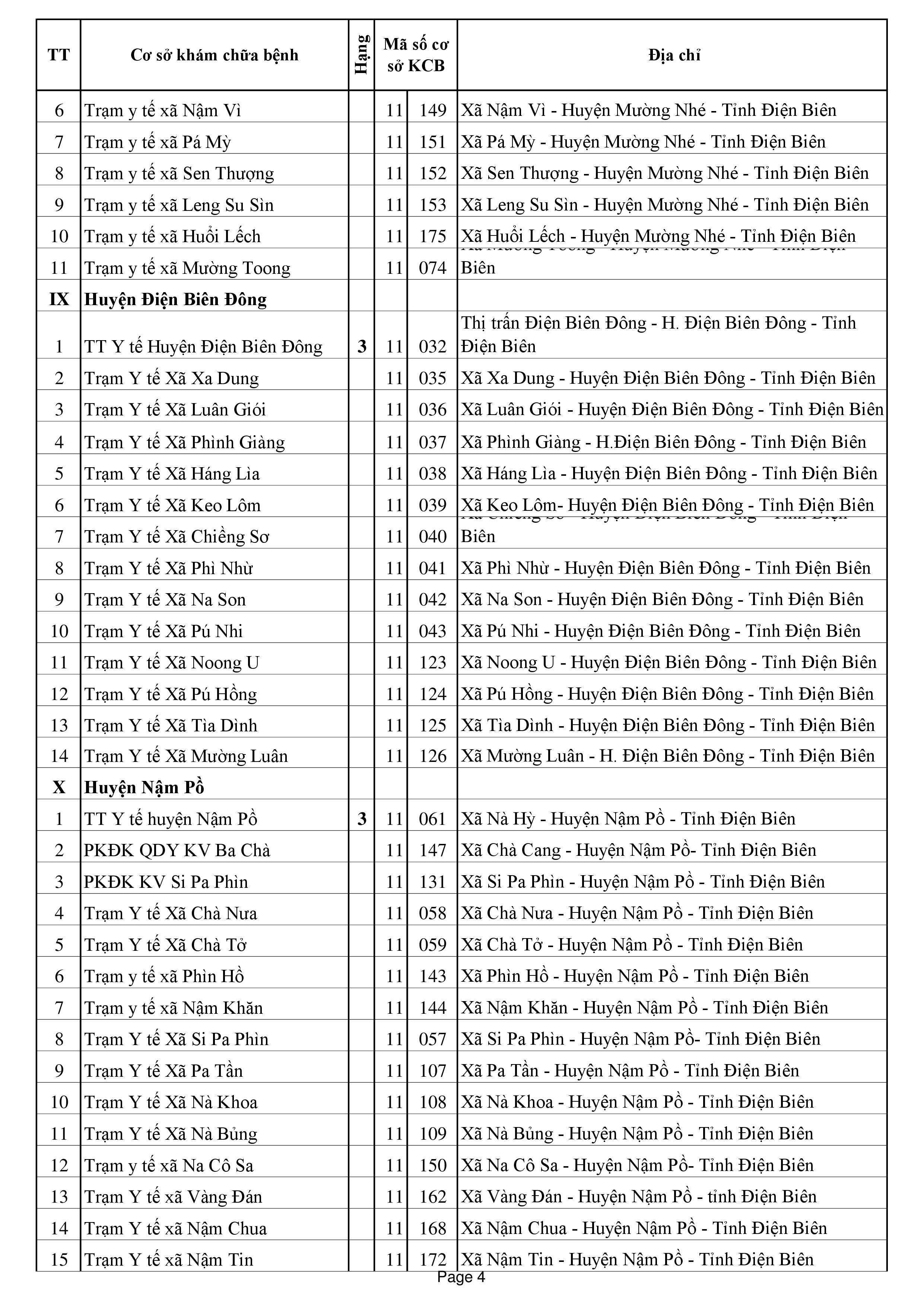 DS Cơ sở y tế tạm Ngừng KCBBĐ BHYT