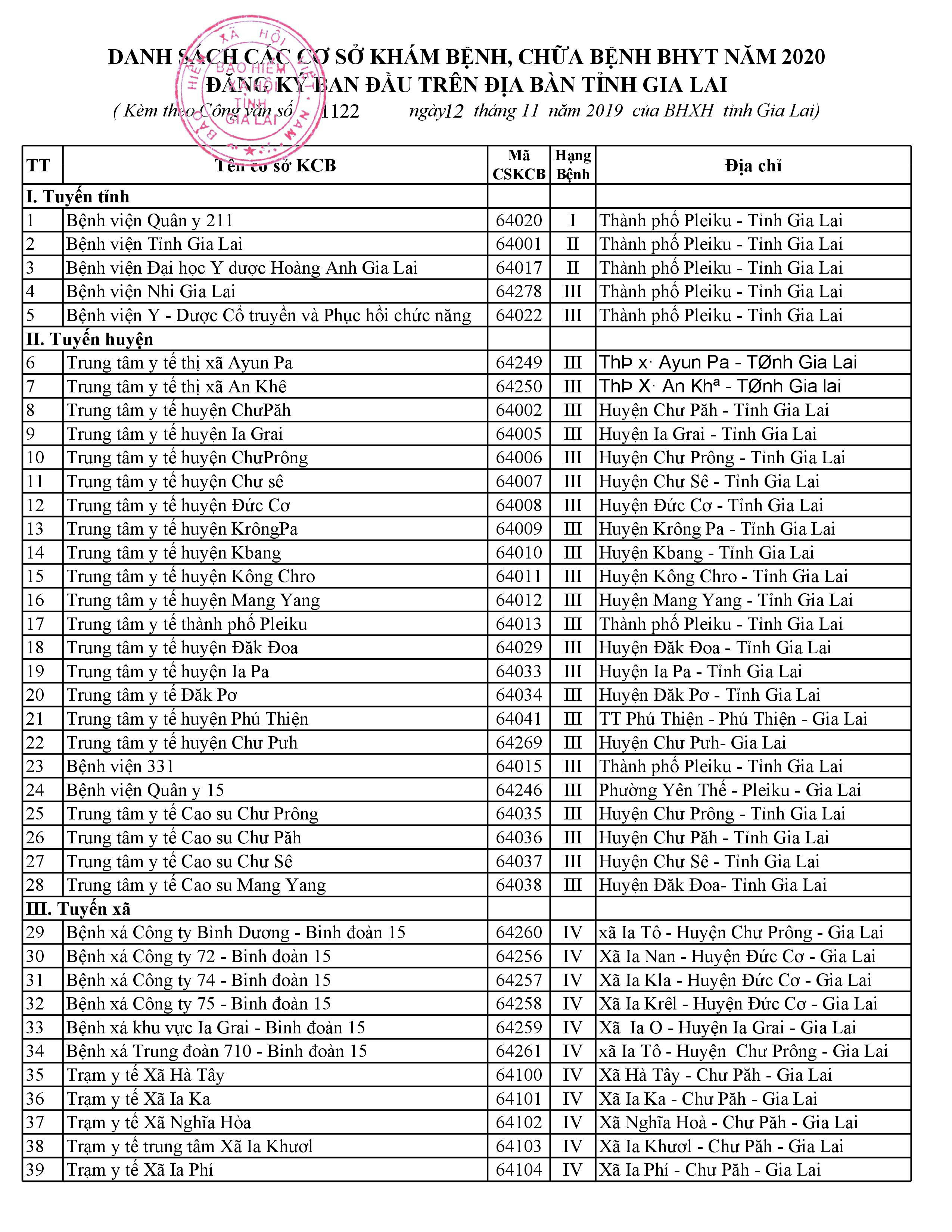 Gia Lai KCB Ngoại tỉnh năm 2020