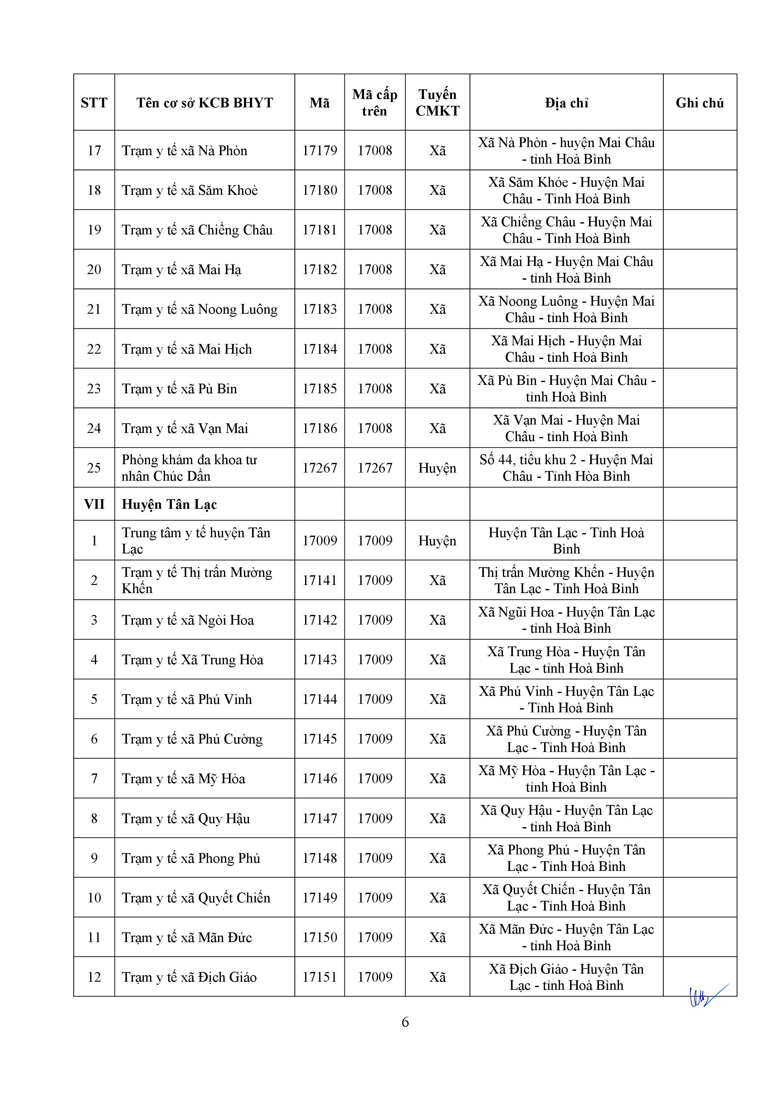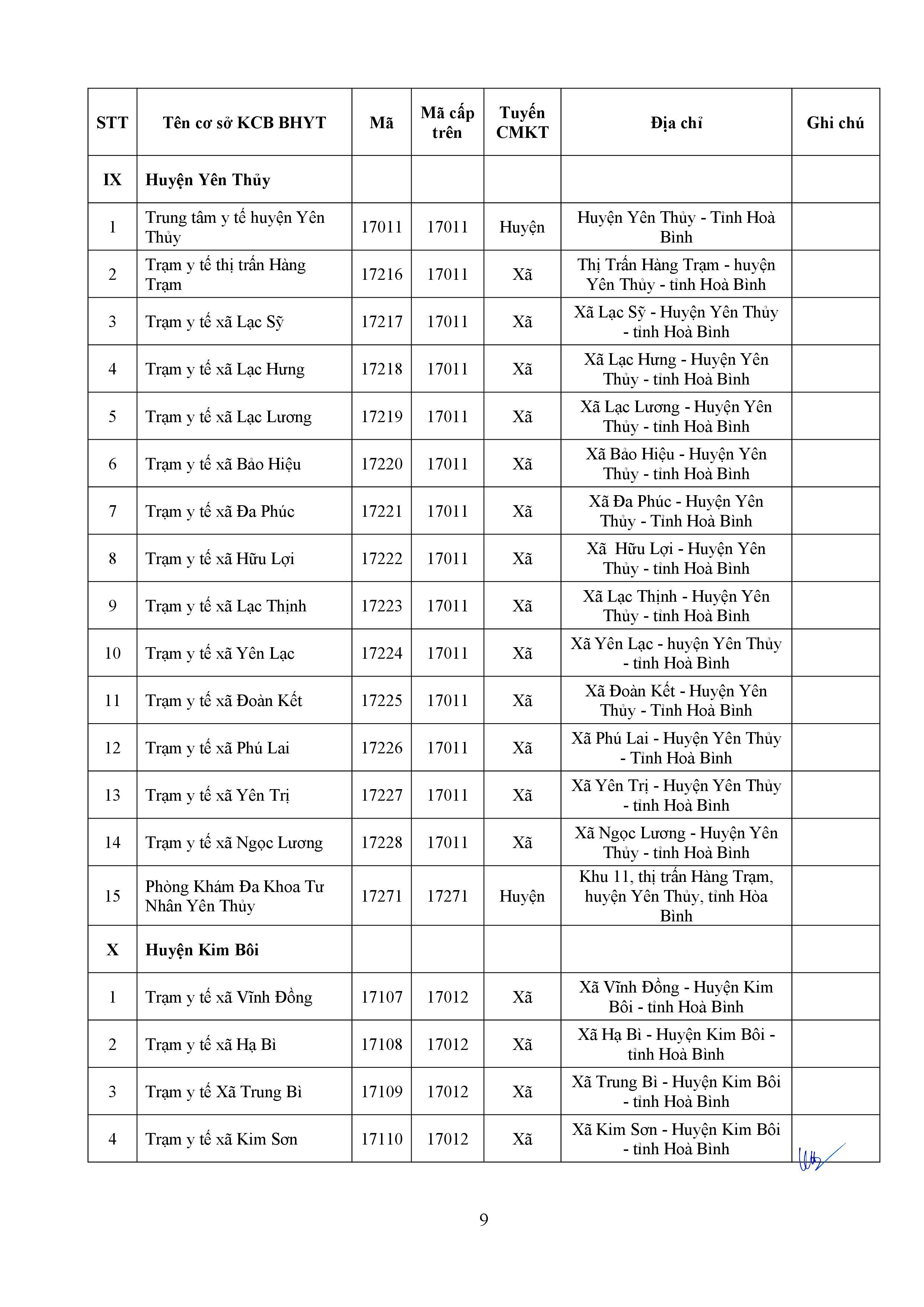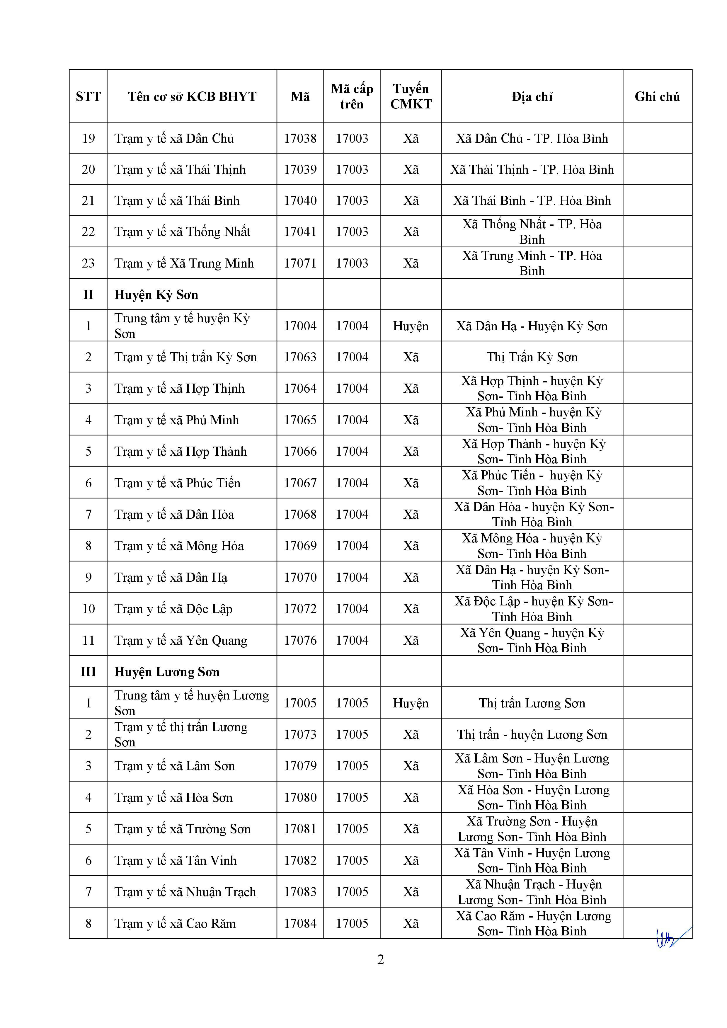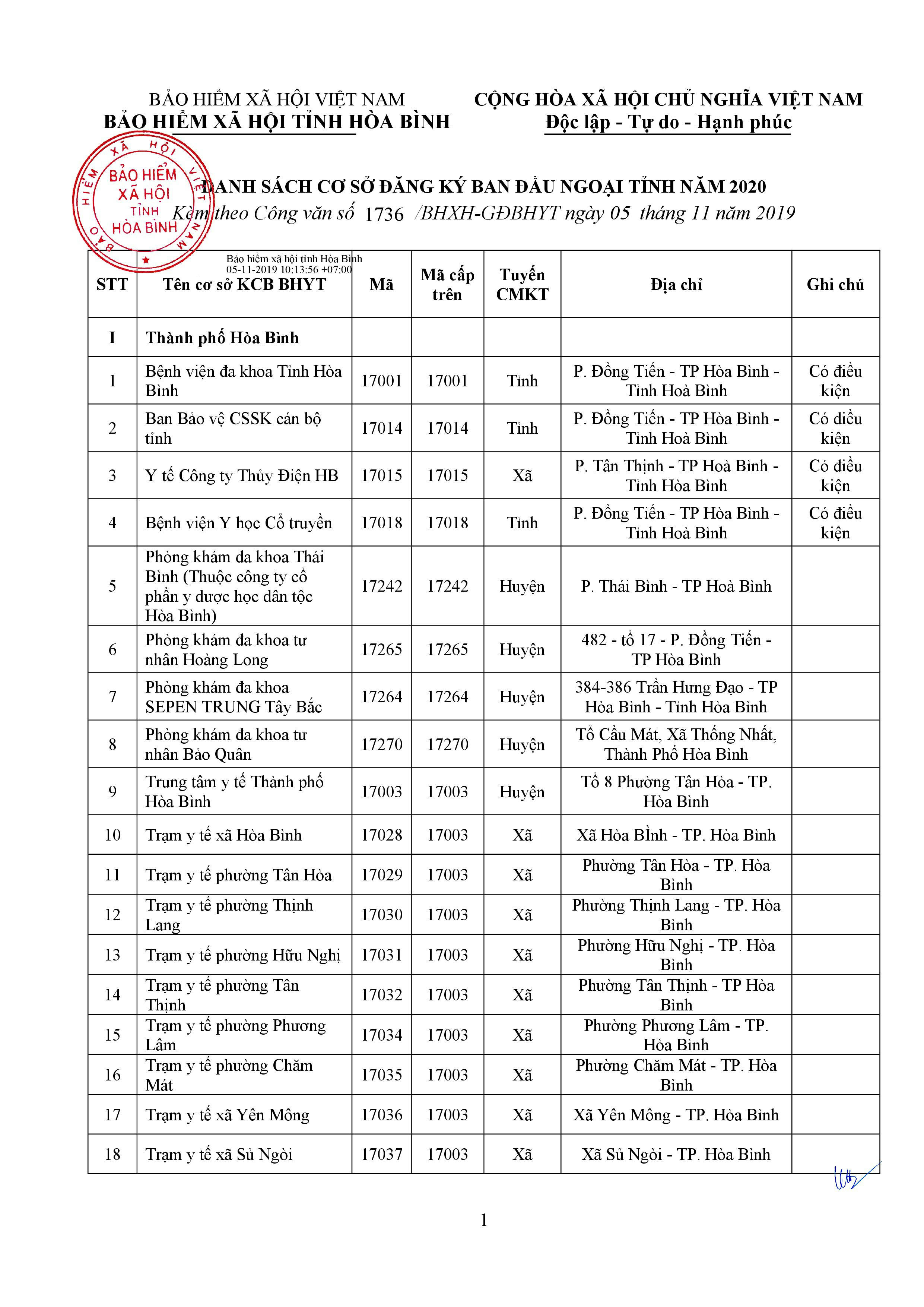 Hòa Bình KCB Ngoại tỉnh năm 2020