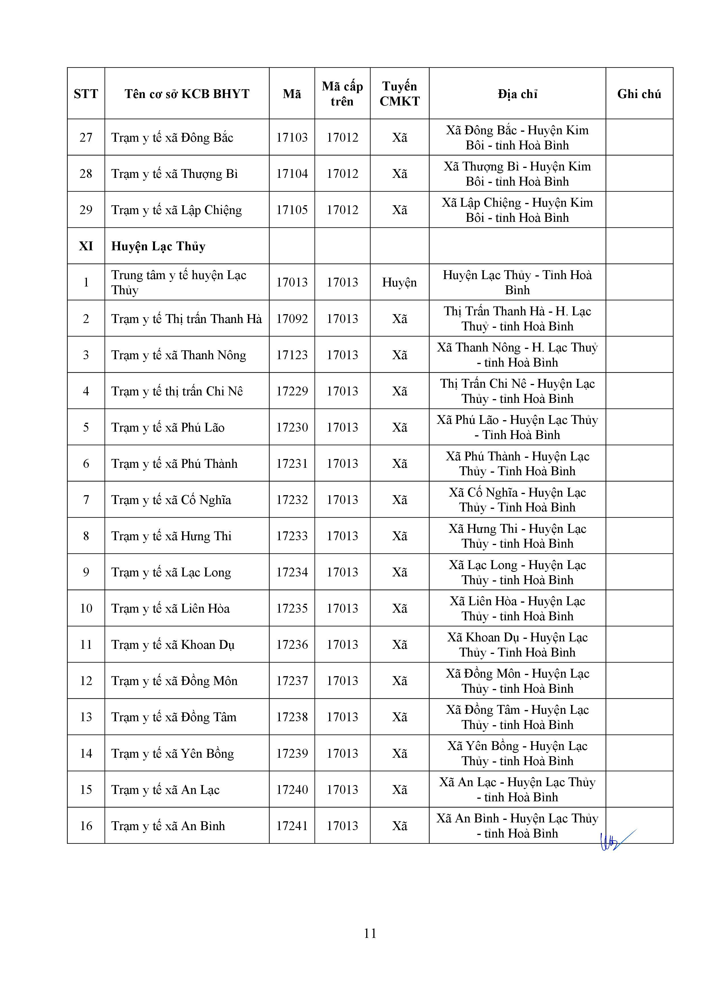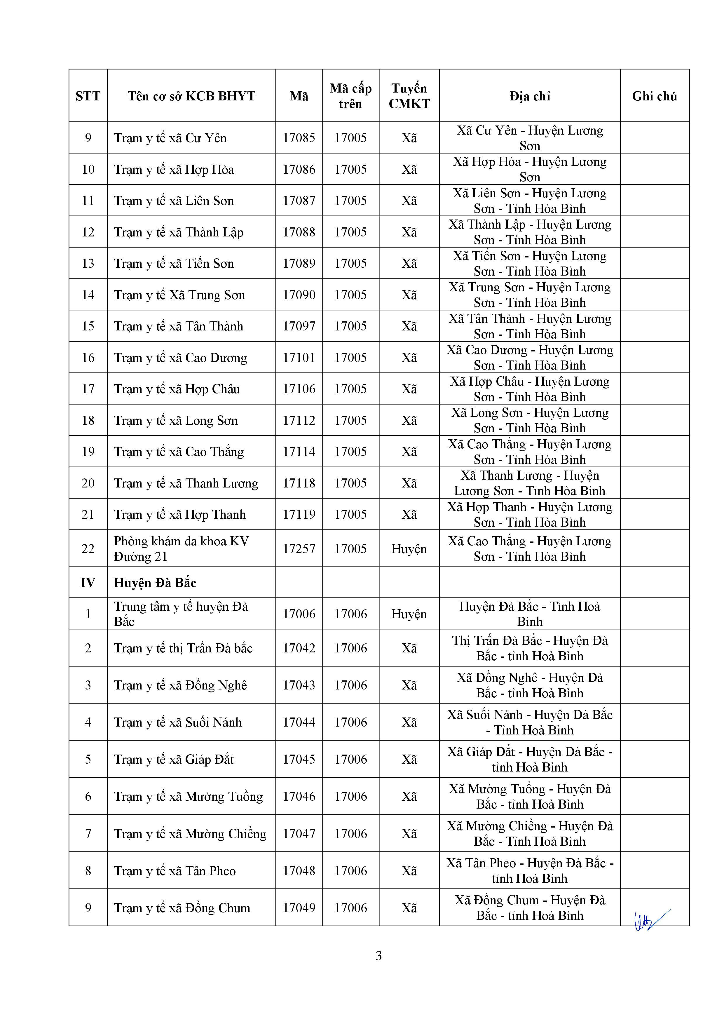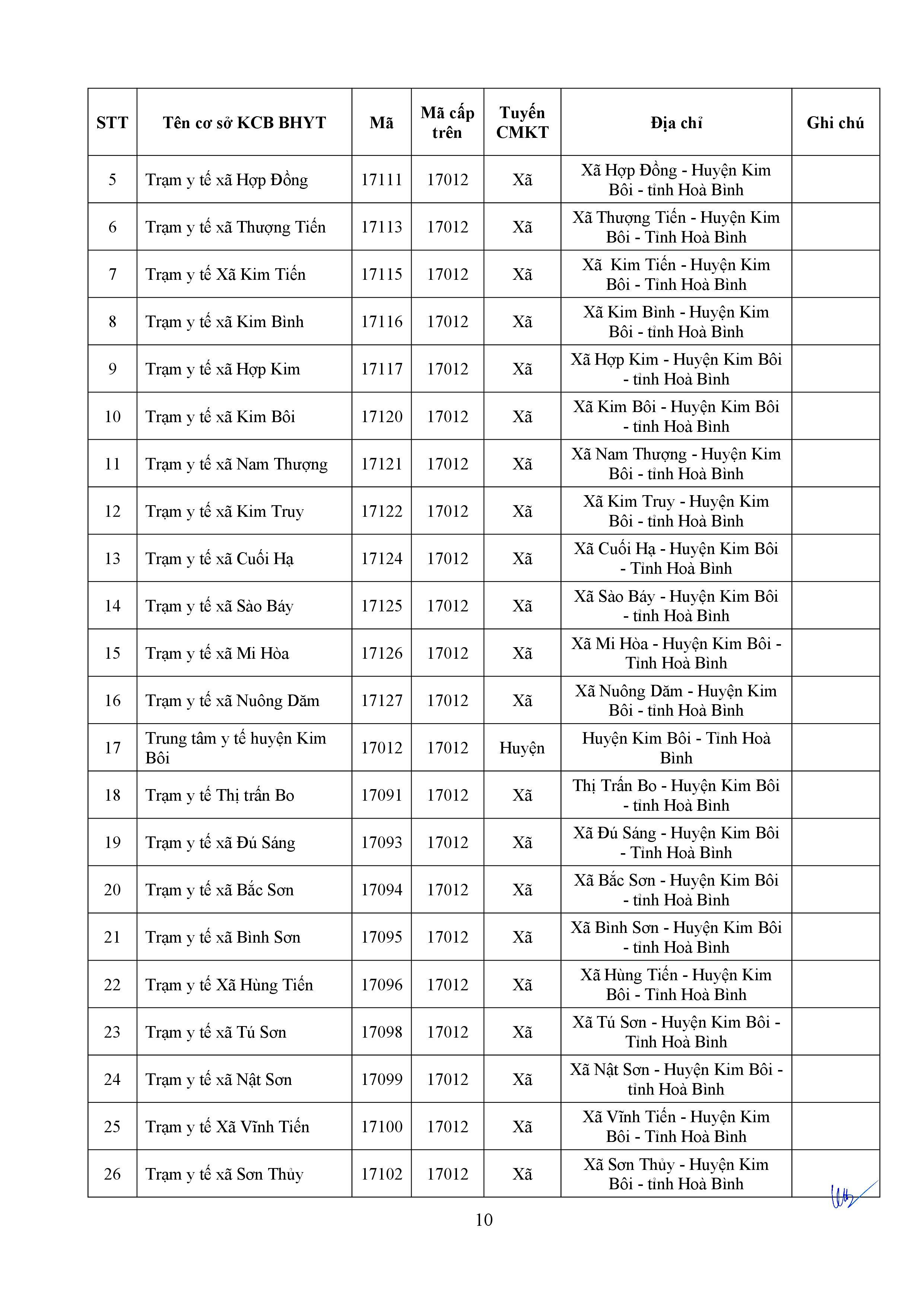 Hòa Bình KCB Ngoại tỉnh năm 2020