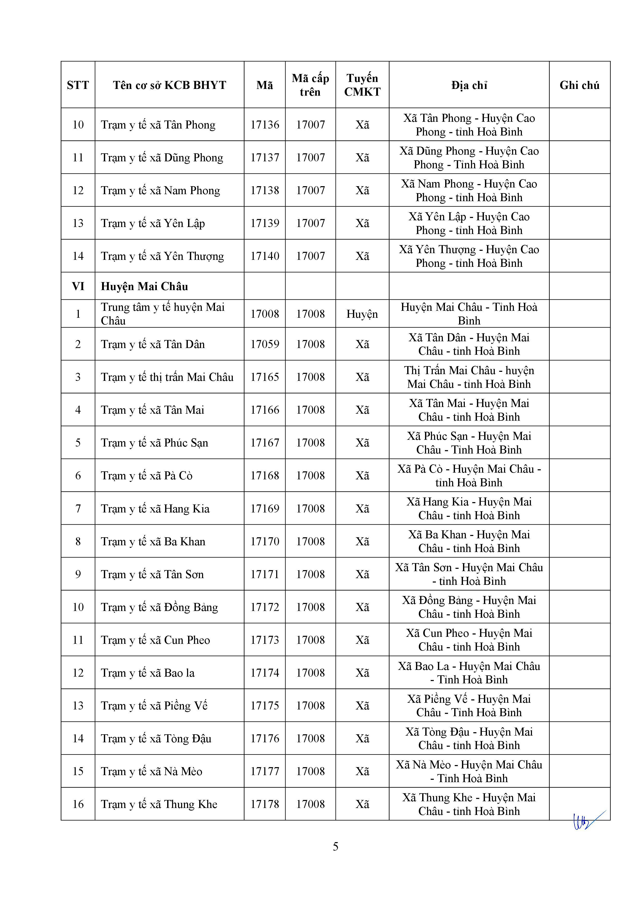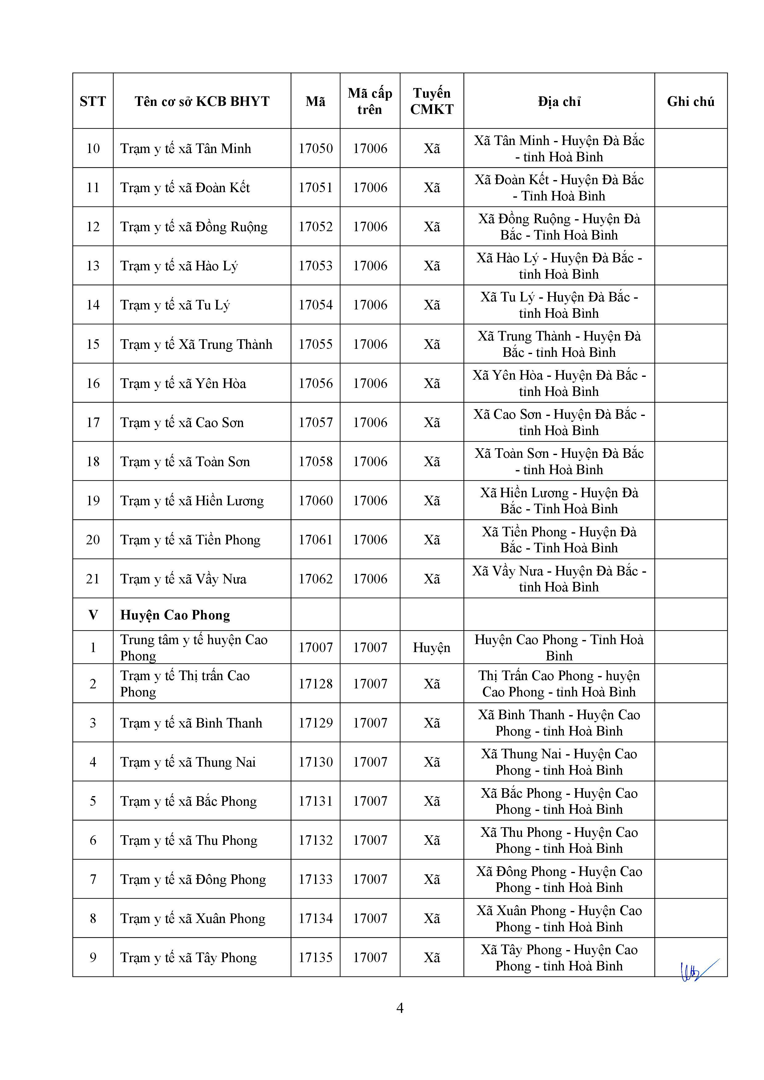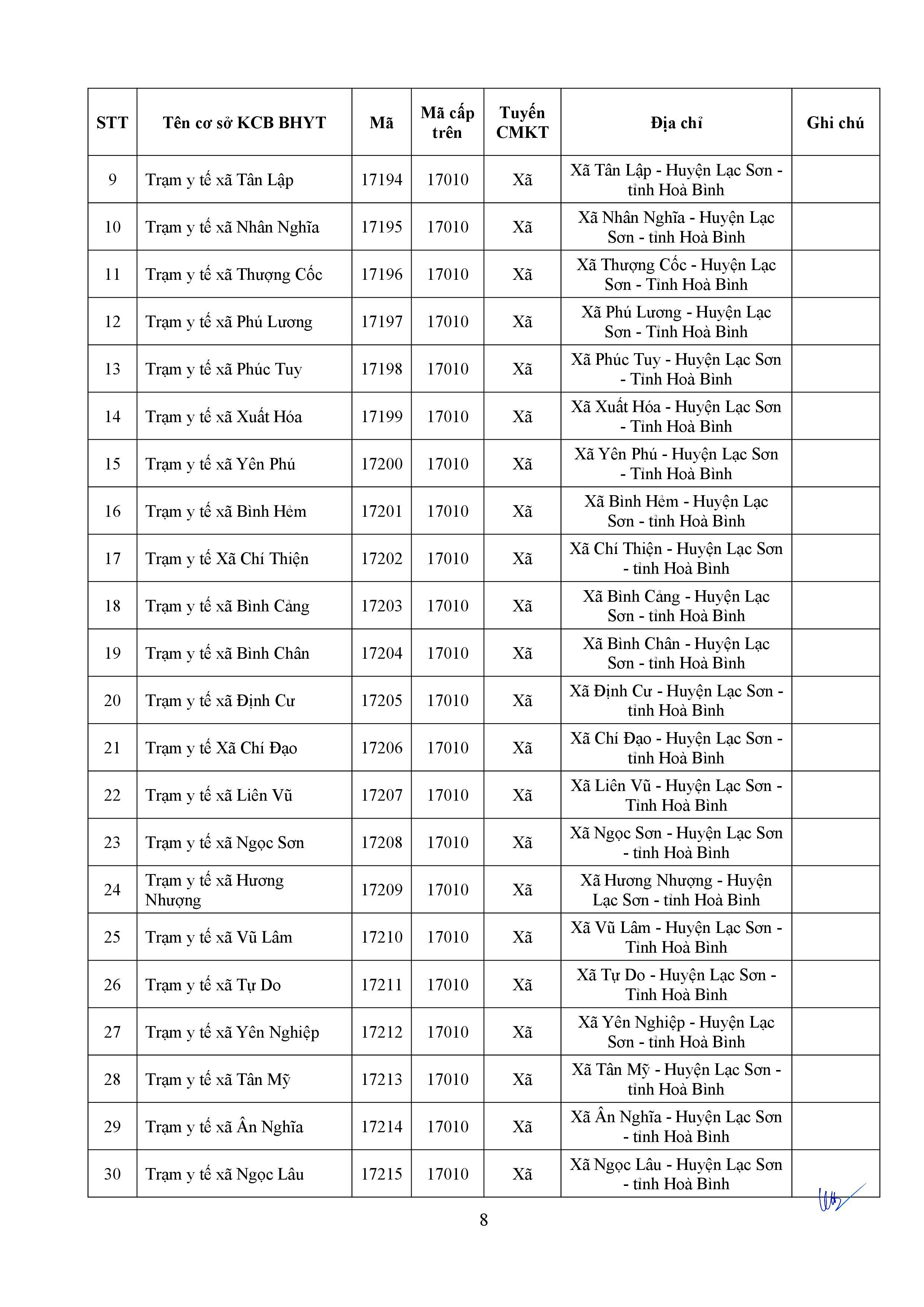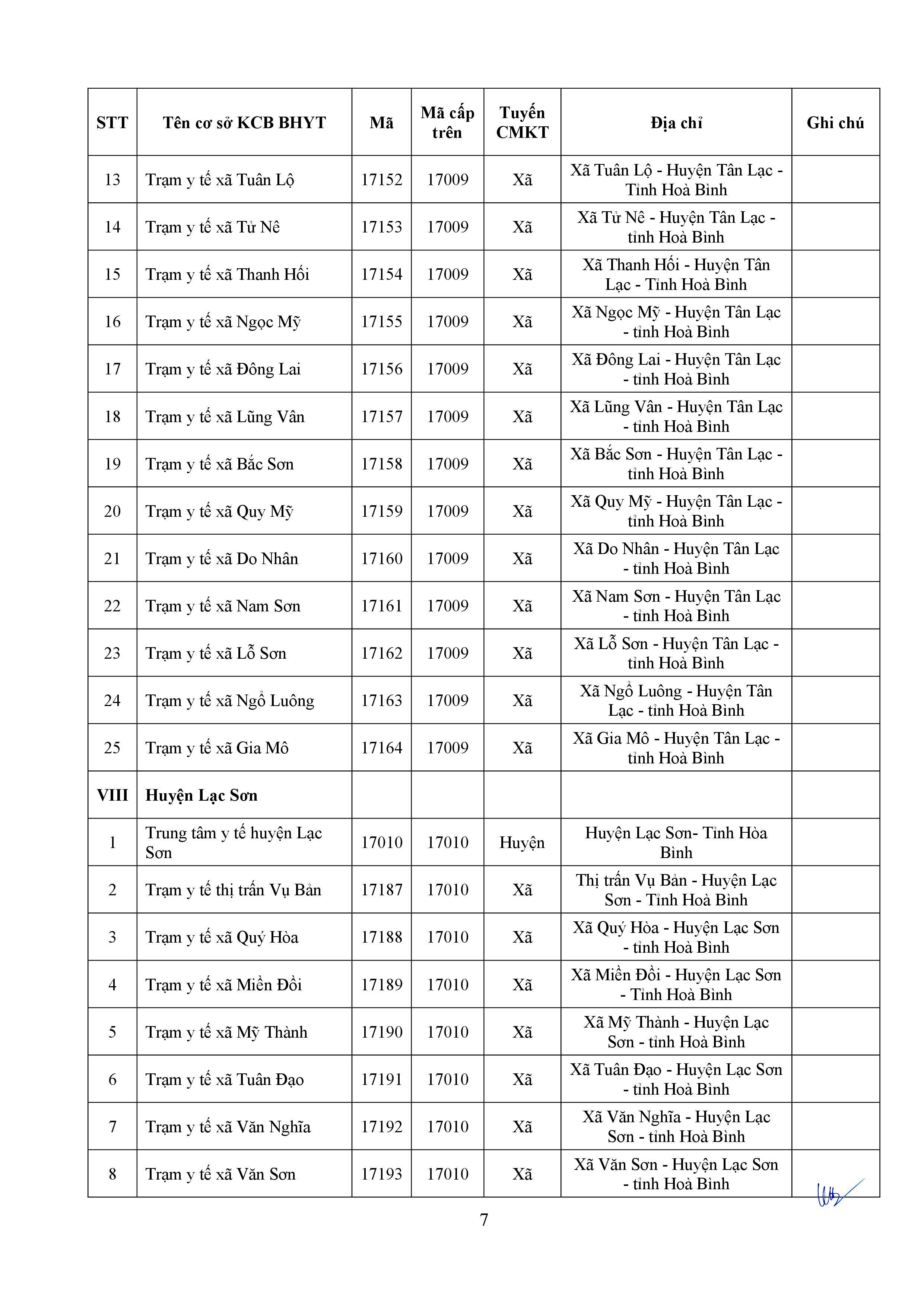 Hòa Bình KCB Ngoại tỉnh năm 2020