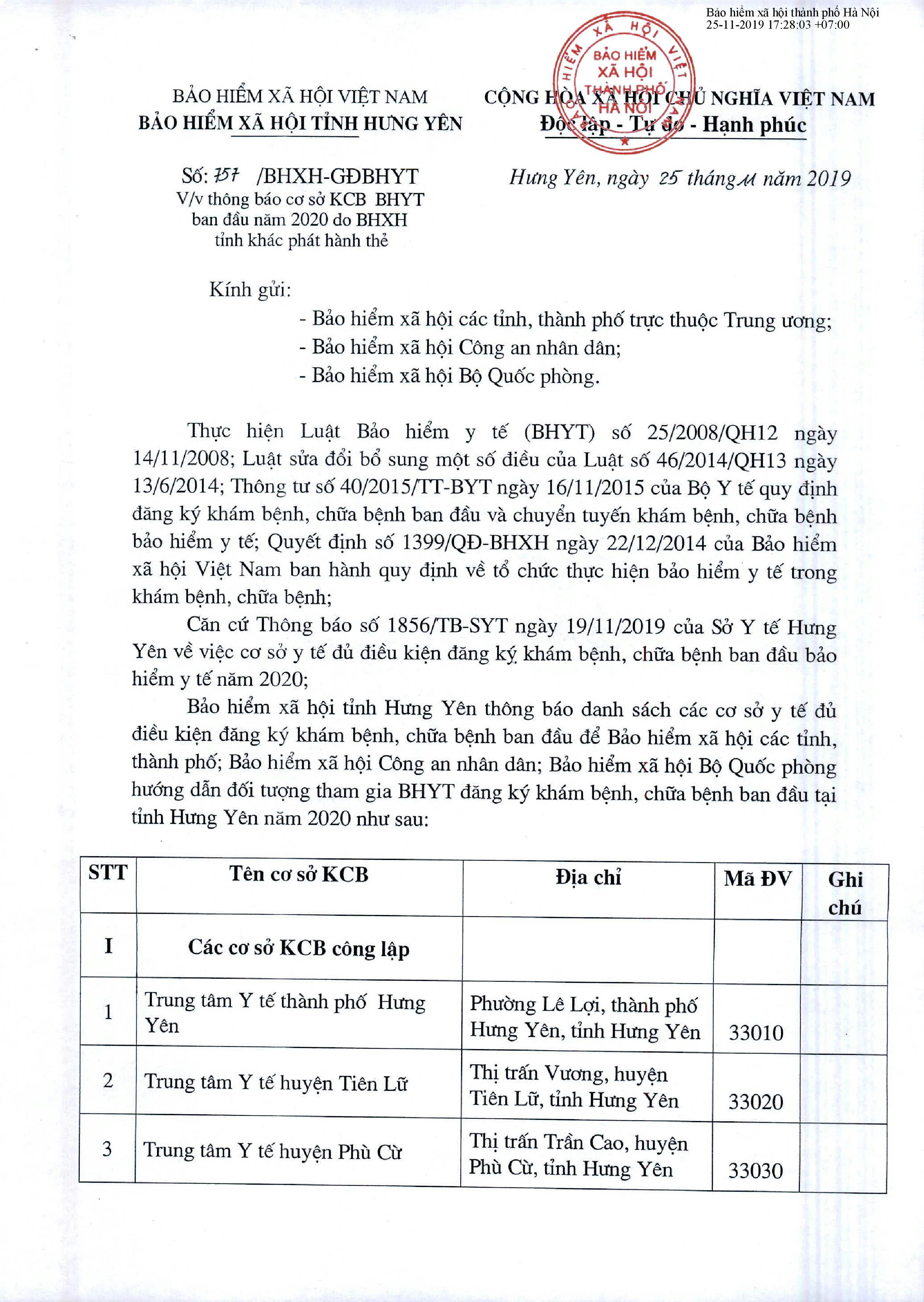 Danh sách Bệnh viện KCB BHYT ban đầu trên Toàn quốc