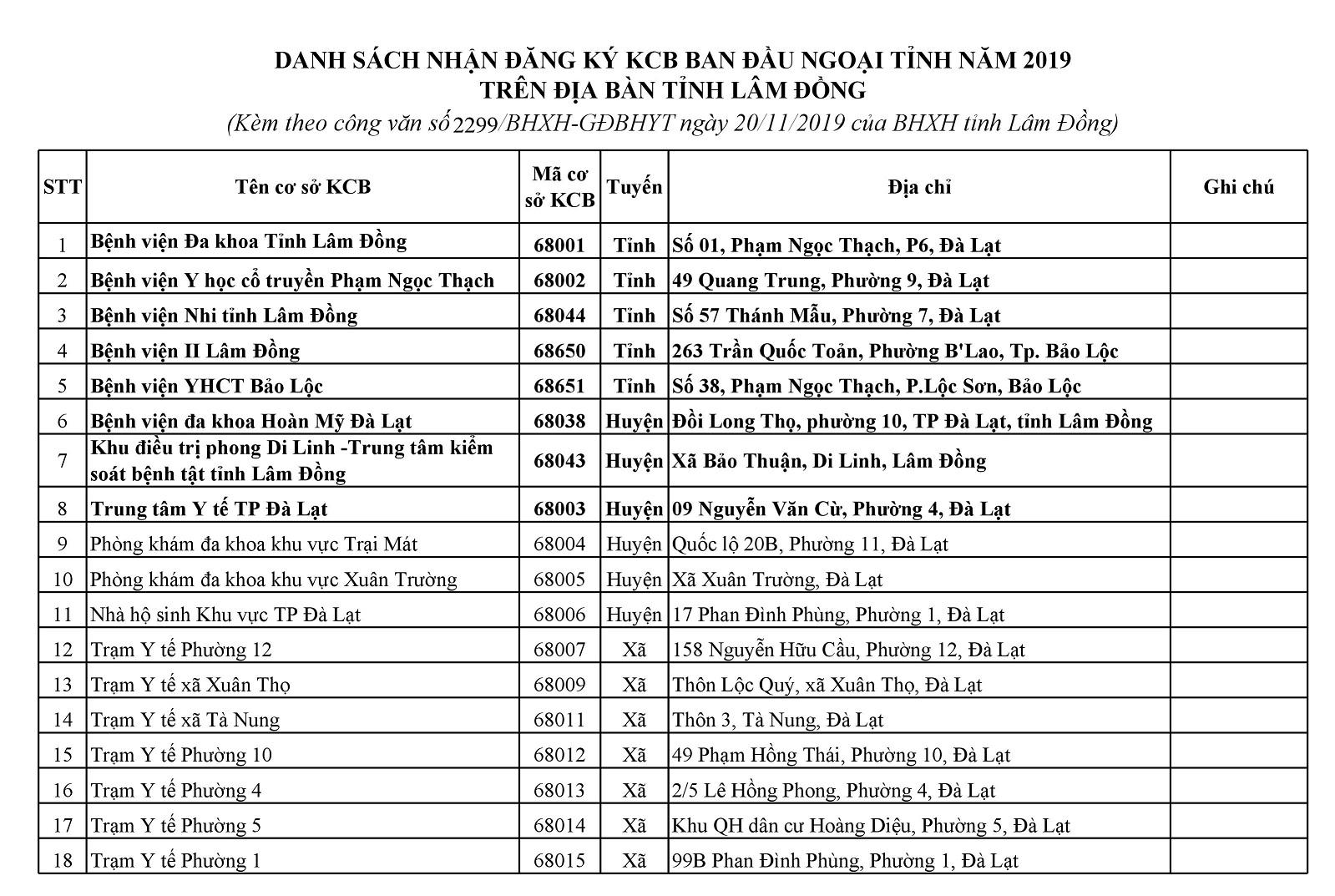 Danh sách Bệnh viện KCB BHYT ban đầu trên Toàn quốc