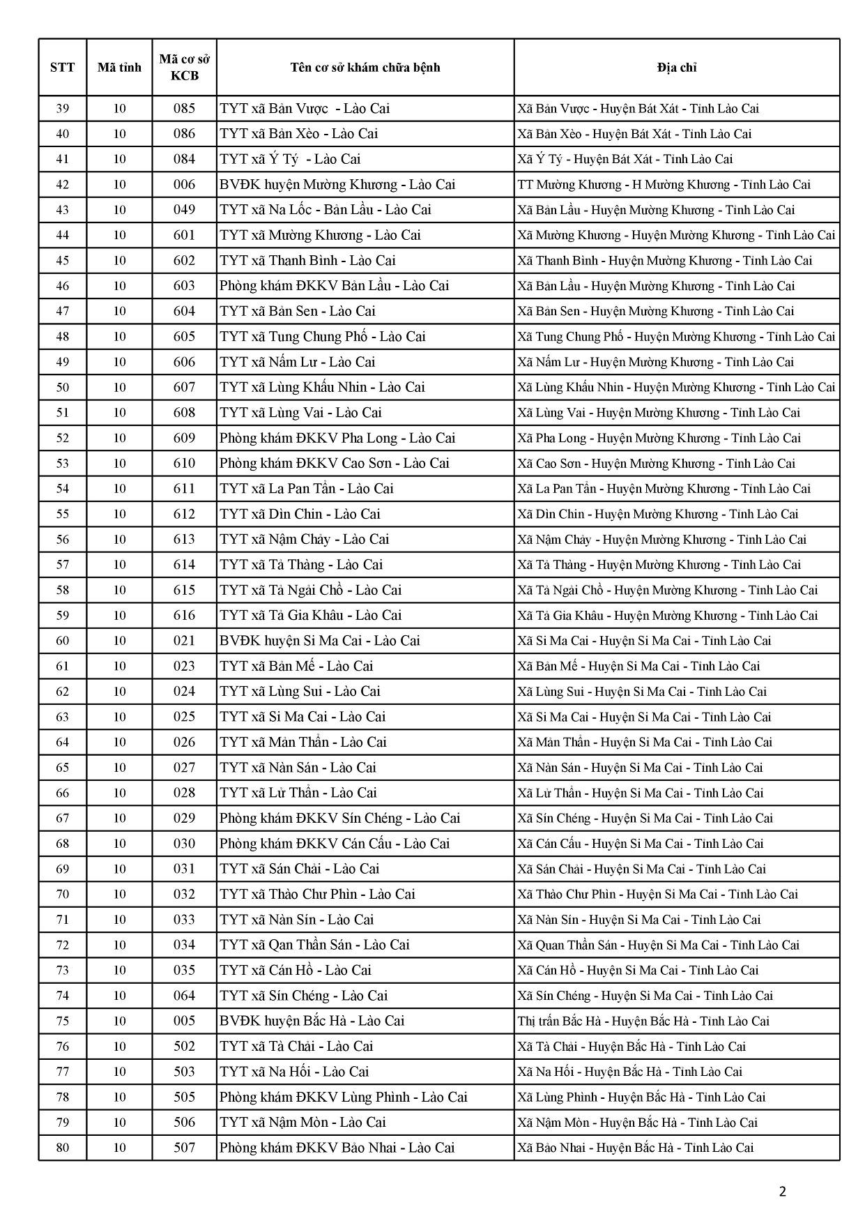Danh sách Bệnh viện KCB BHYT ban đầu trên Toàn quốc