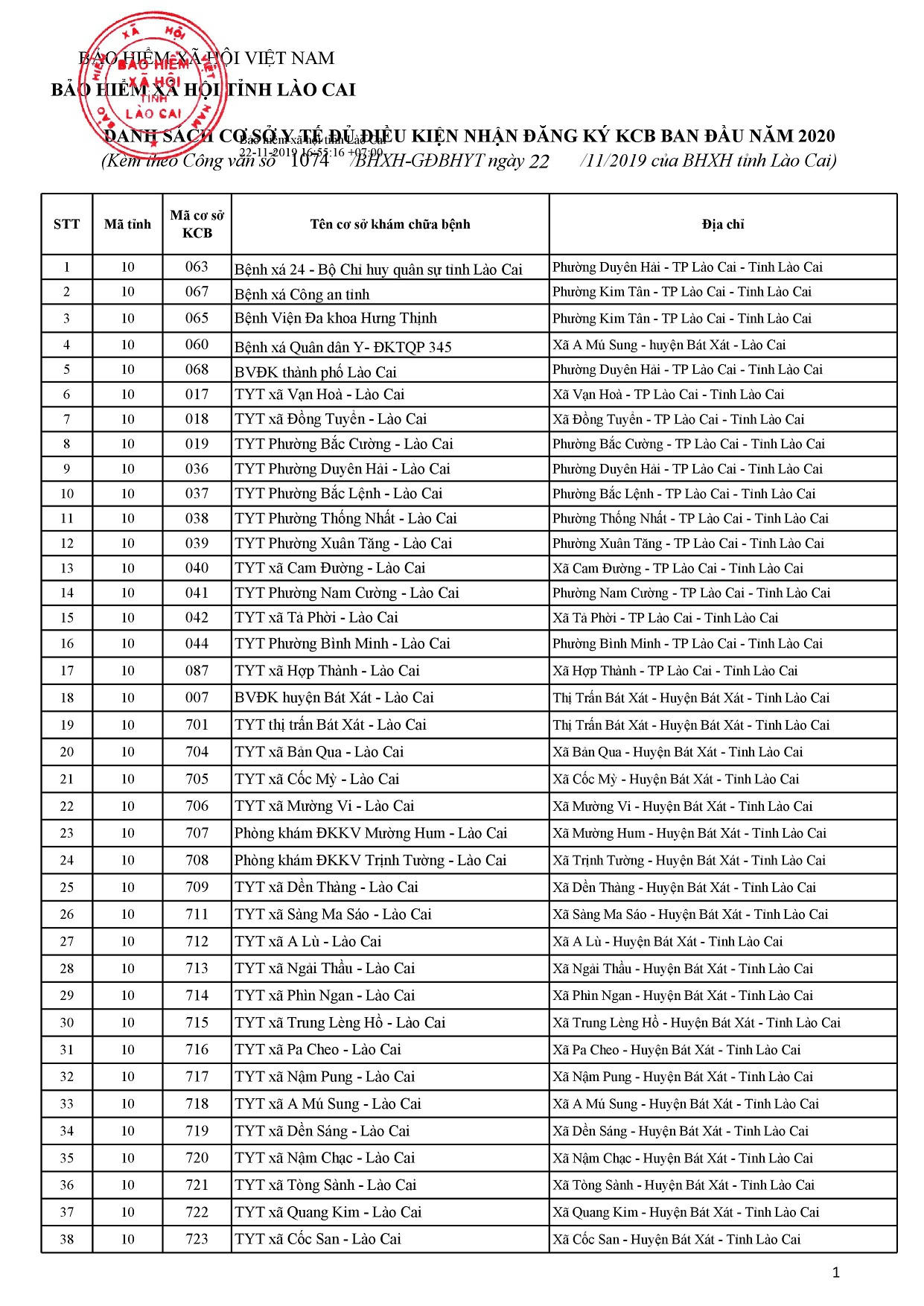 Lào Cai KCB Ngoại tỉnh năm 2020