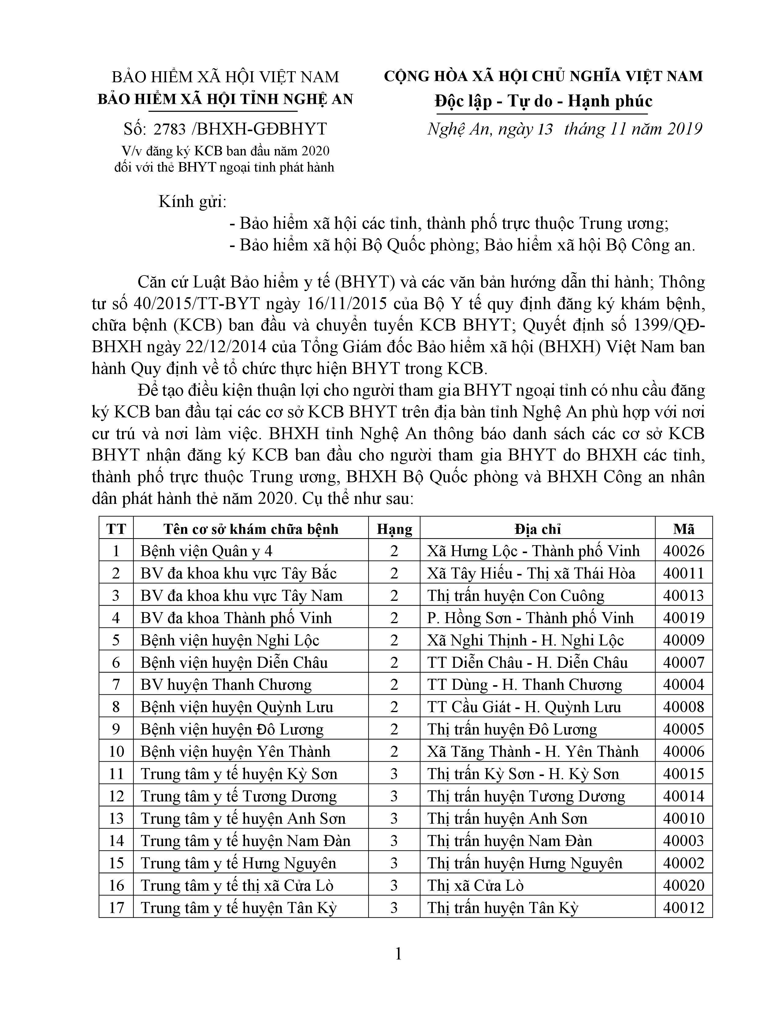 Danh sách Bệnh viện KCB BHYT ban đầu trên Toàn quốc