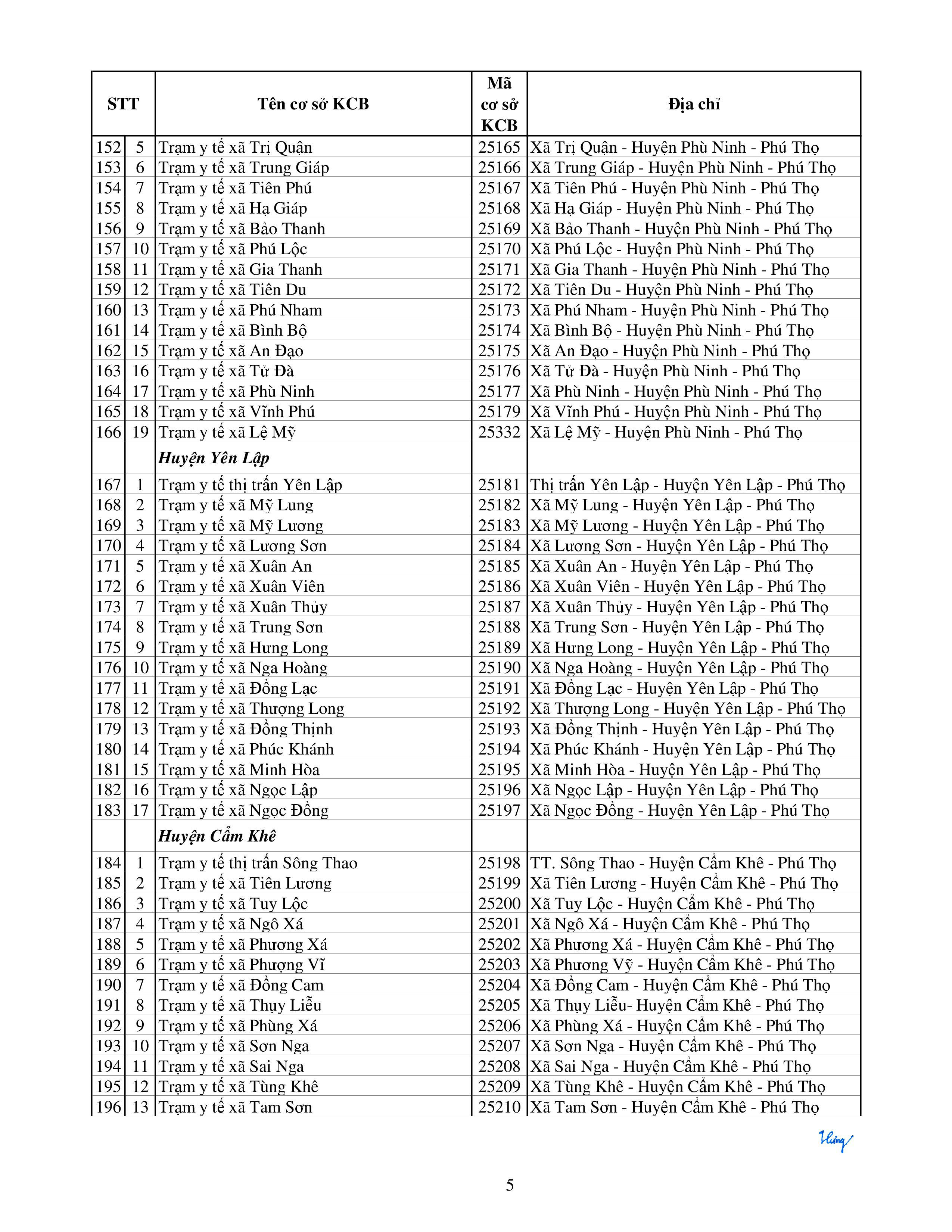 DS Cơ sở y tế tạm Ngừng KCBBĐ BHYT