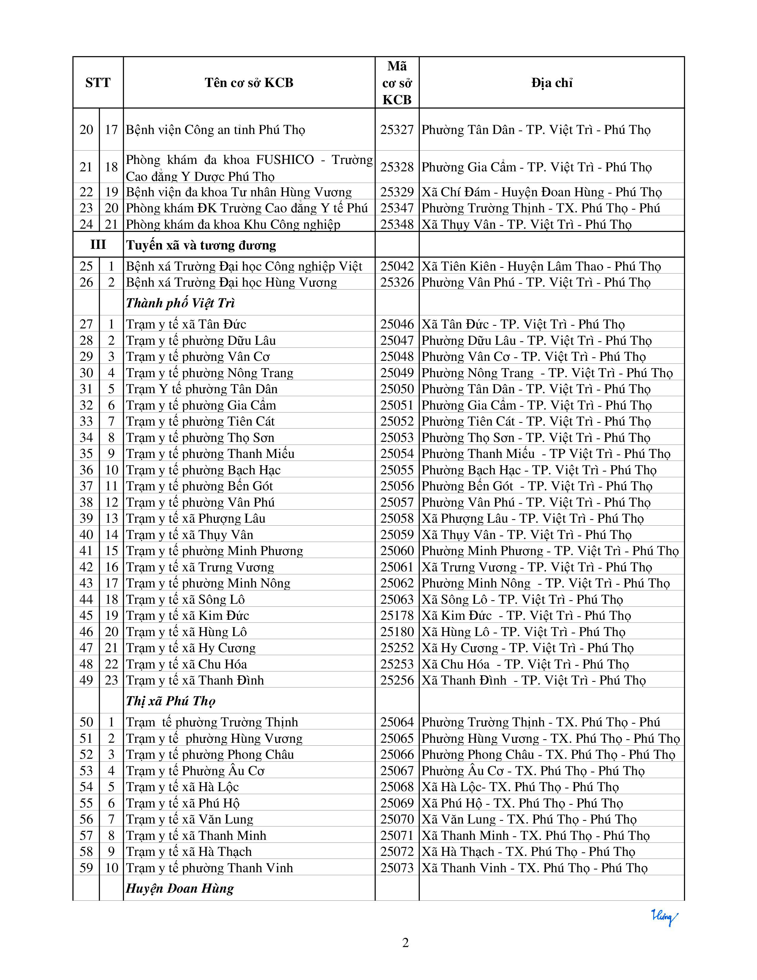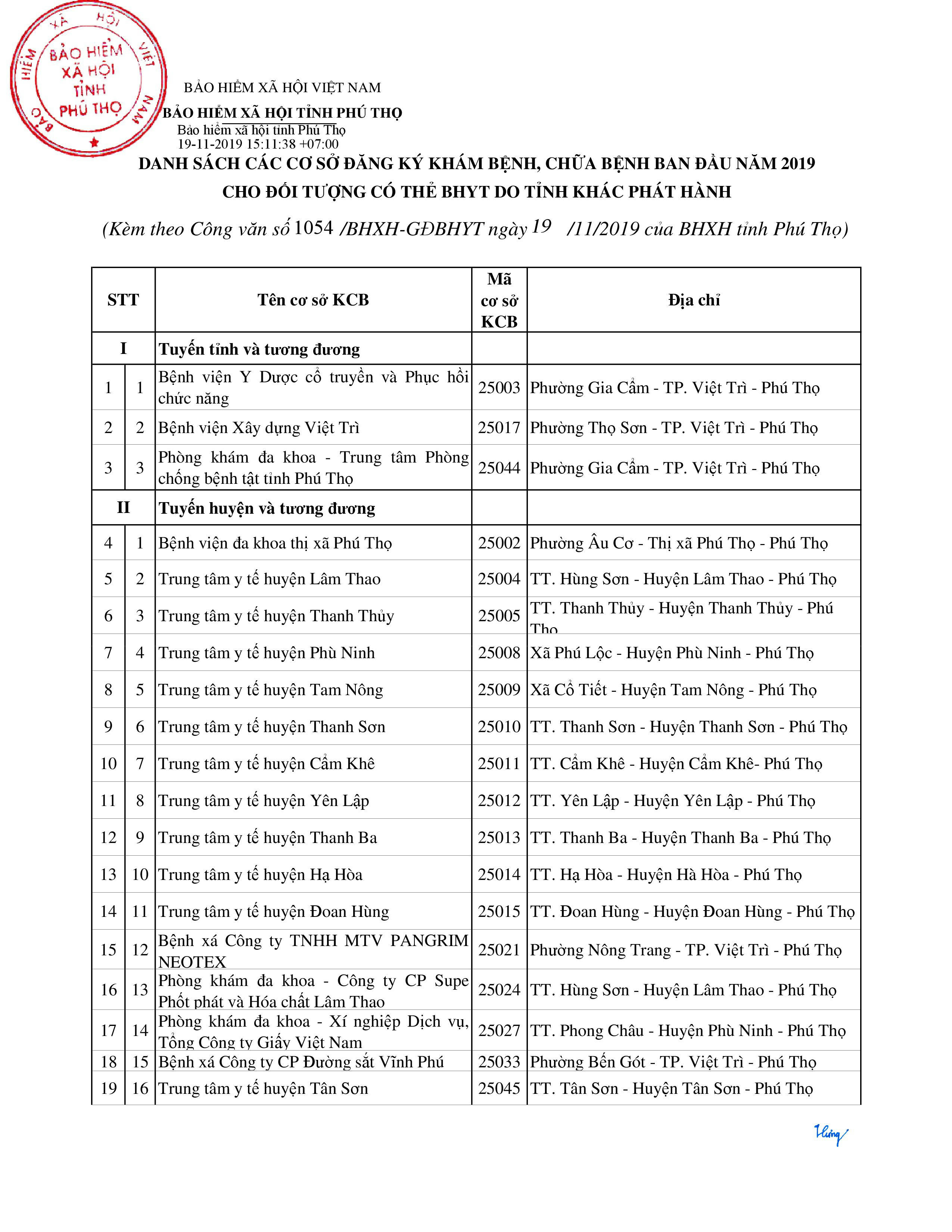 Phú Thọ KCB Ngoại tỉnh năm 2020