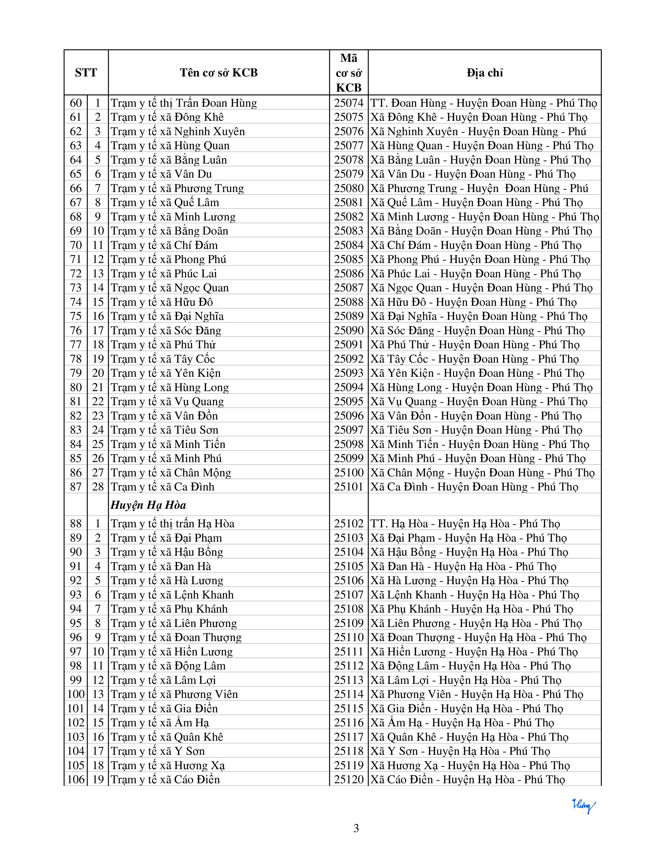 Danh sách Bệnh viện KCB BHYT ban đầu trên Toàn quốc