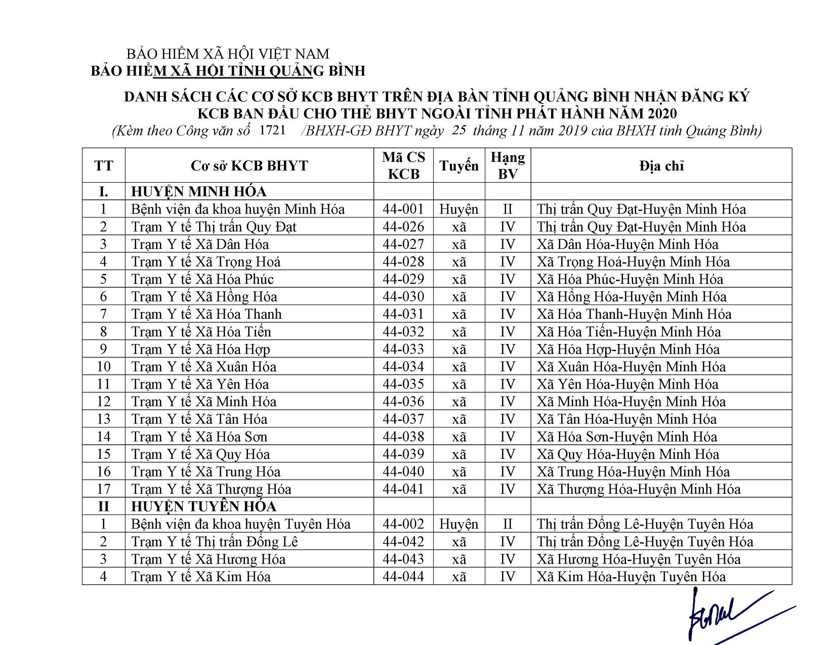 Danh sách Bệnh viện KCB BHYT ban đầu trên Toàn quốc