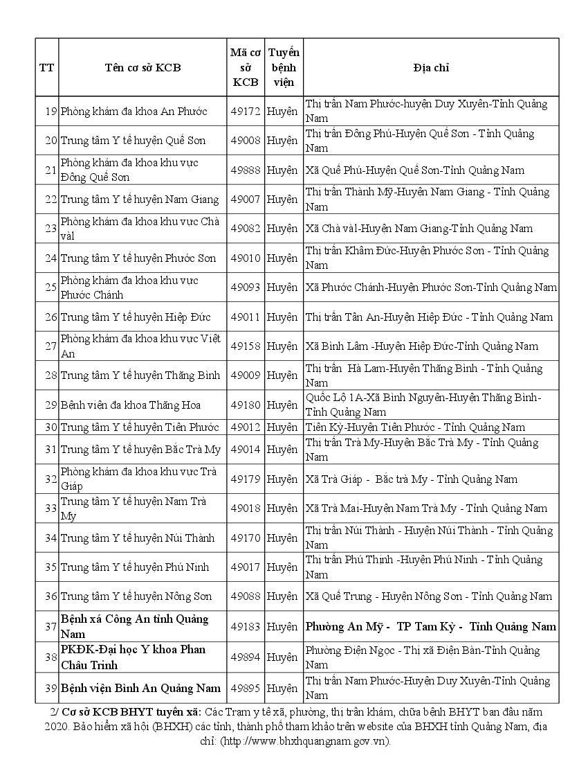 Quảng Nam KCB Ngoại tỉnh năm 2020