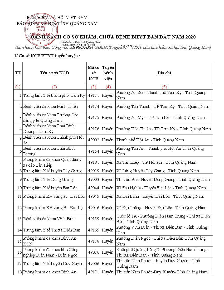 Danh sách Bệnh viện KCB BHYT ban đầu trên Toàn quốc