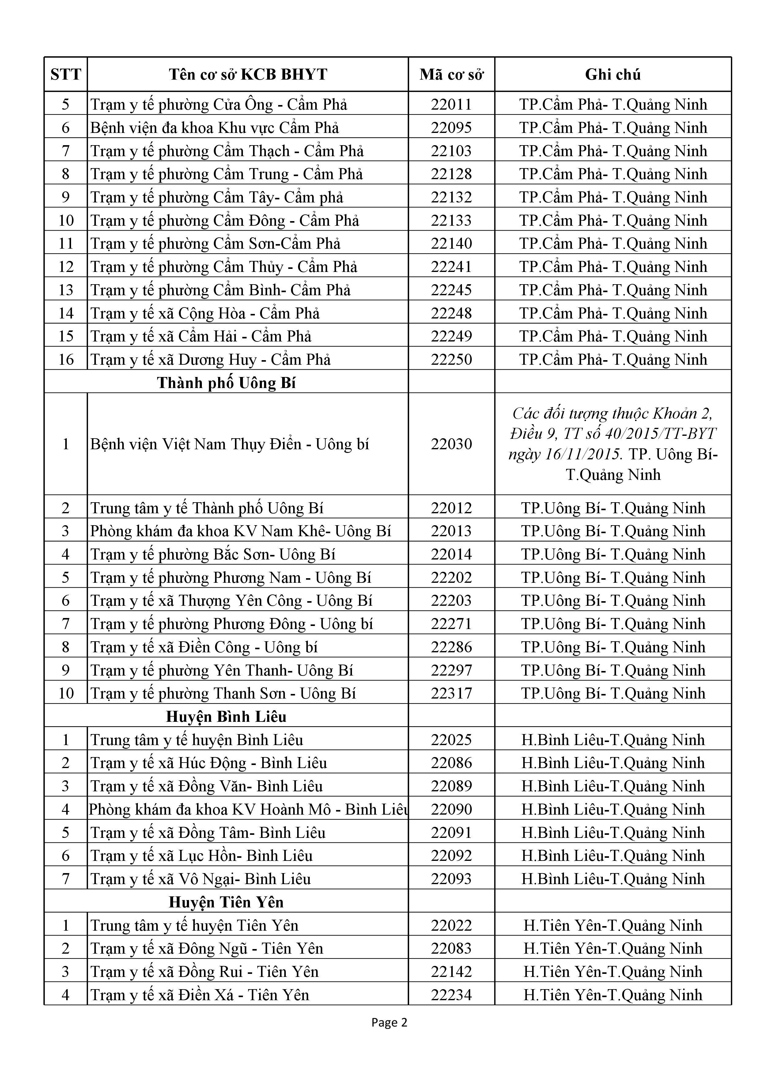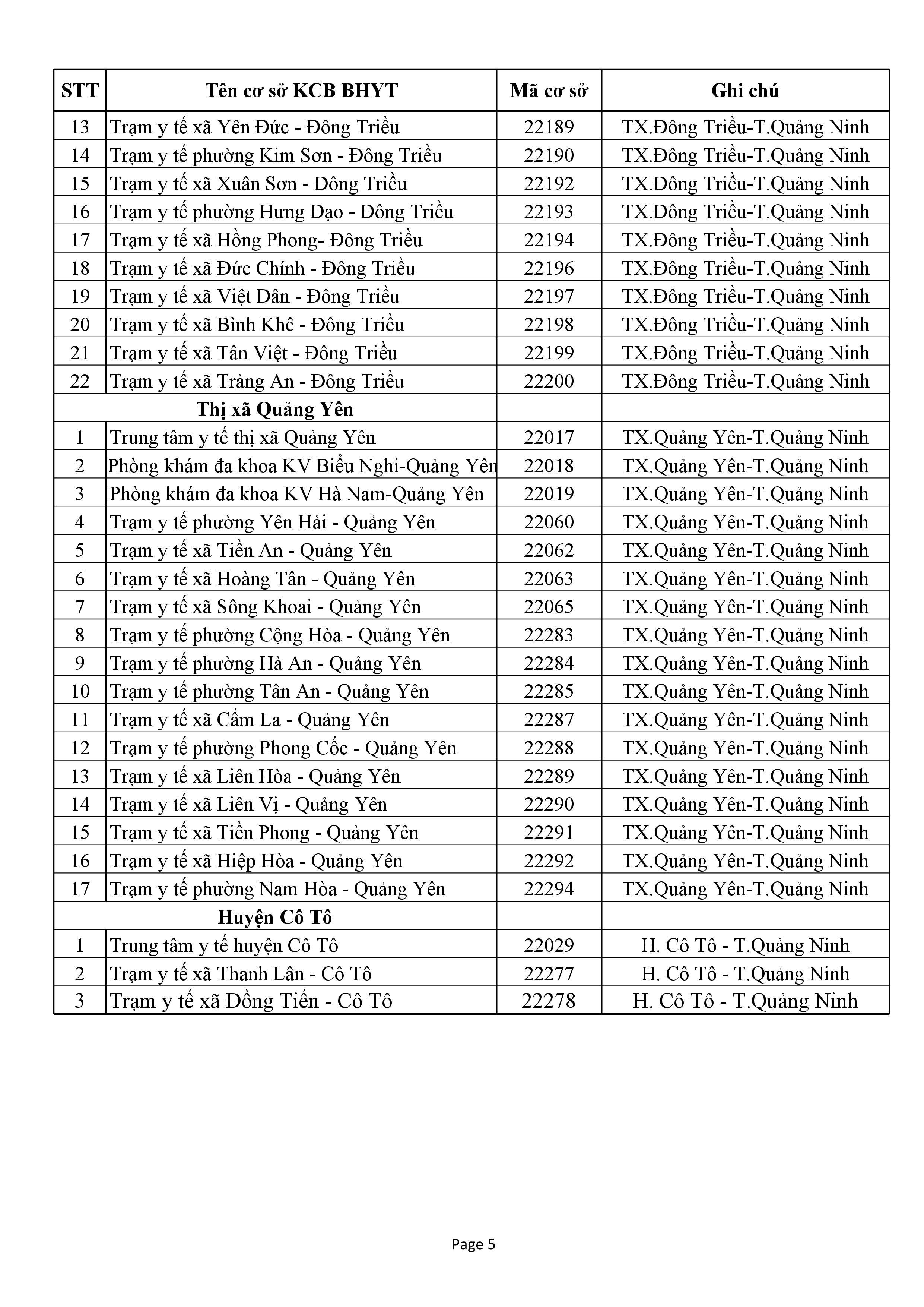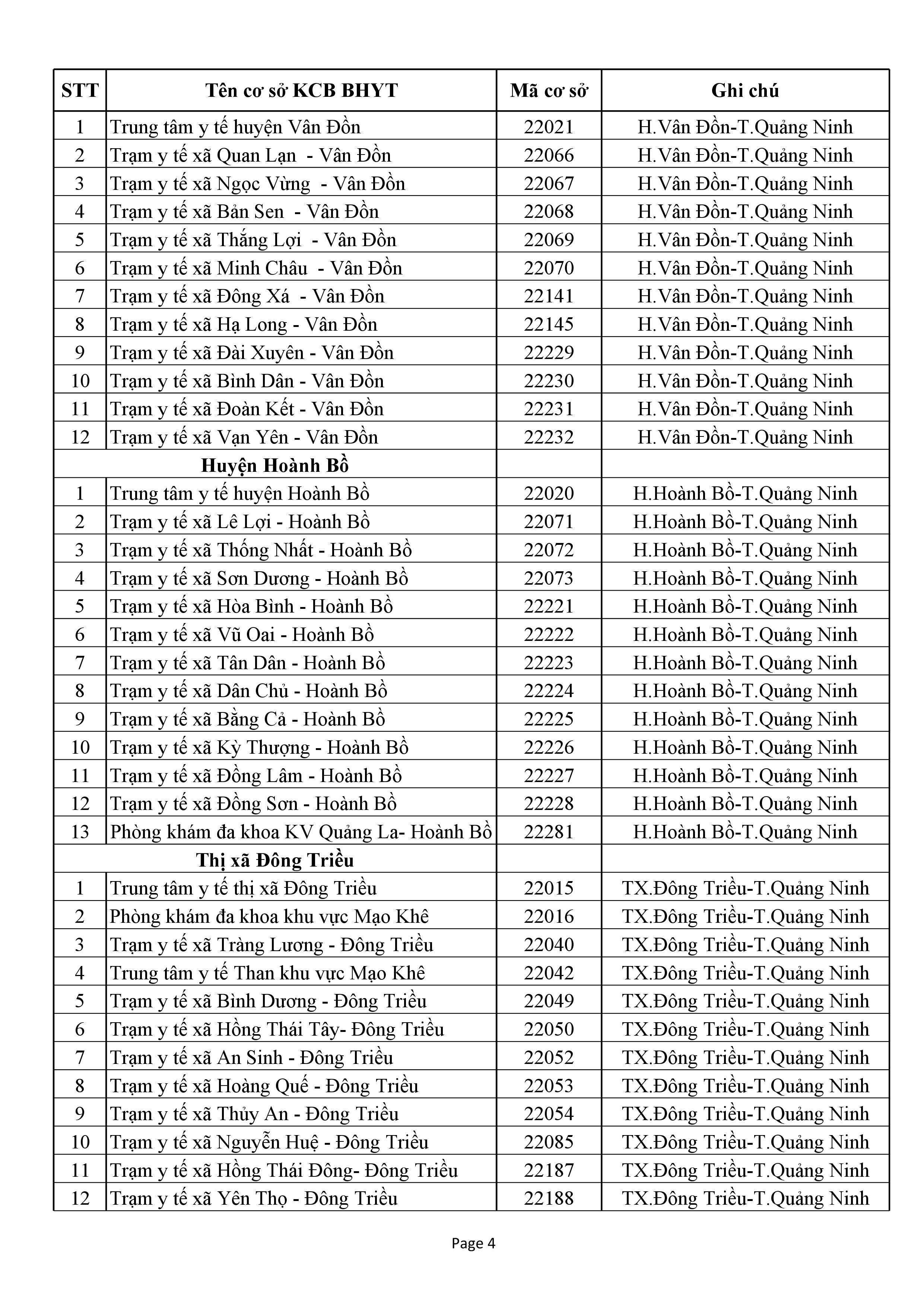 DS Cơ sở y tế tạm Ngừng KCBBĐ BHYT
