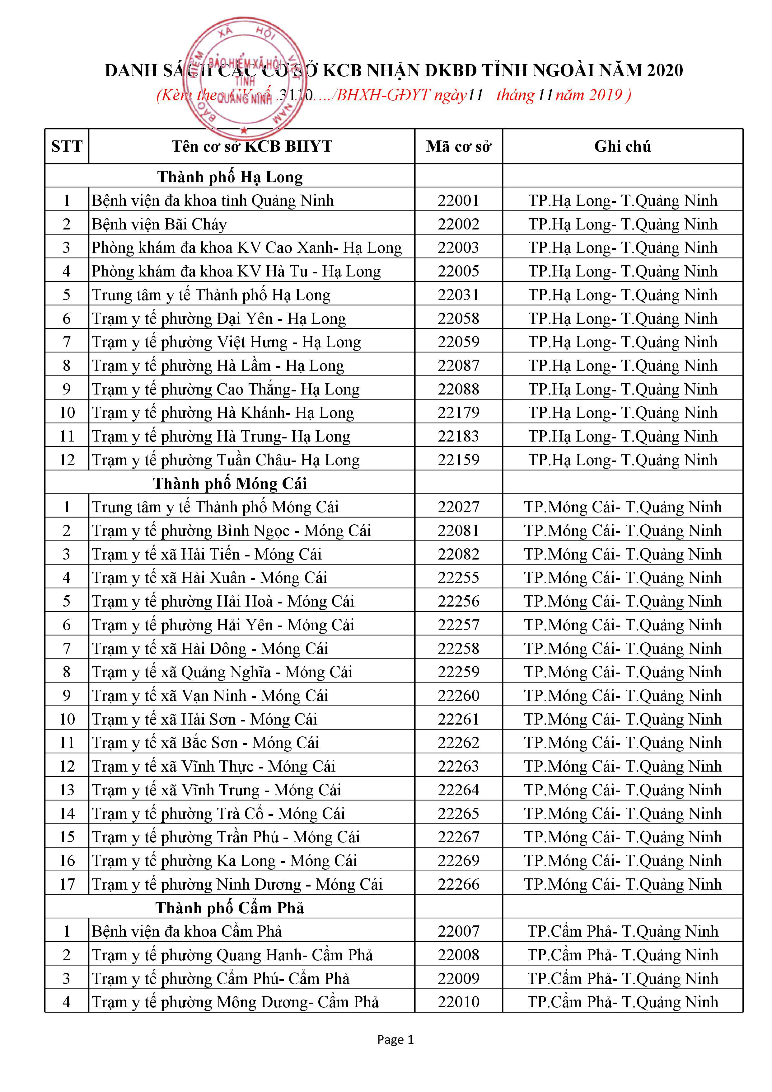 Danh sách Bệnh viện KCB BHYT ban đầu trên Toàn quốc