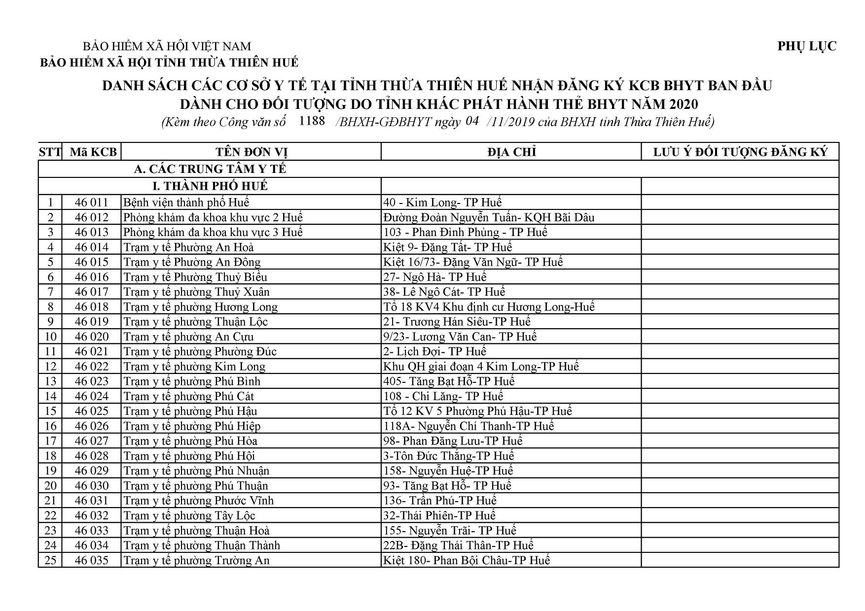 Thừa Thiên Huế KCB Ngoại tỉnh năm 2020