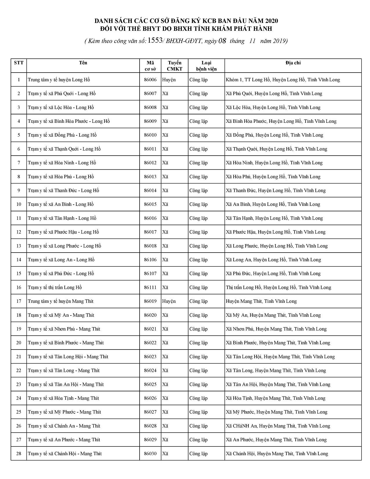 Danh sách Bệnh viện KCB BHYT ban đầu trên Toàn quốc