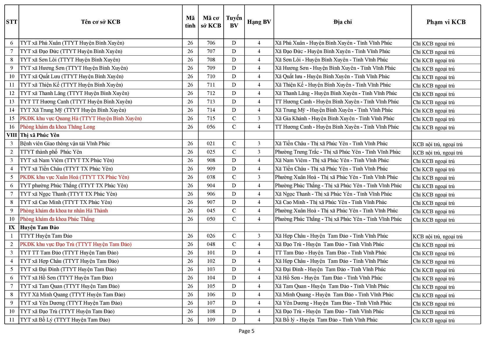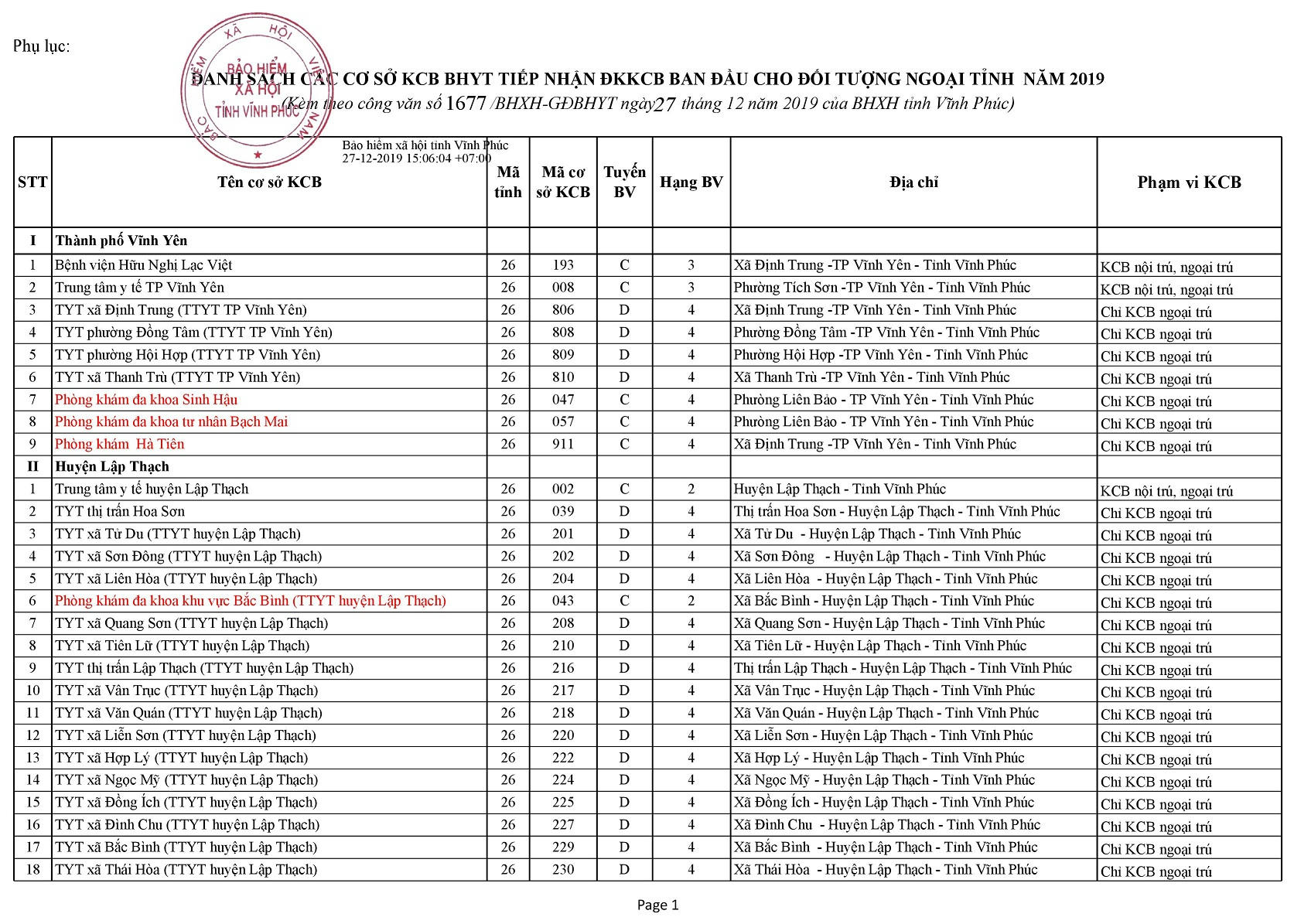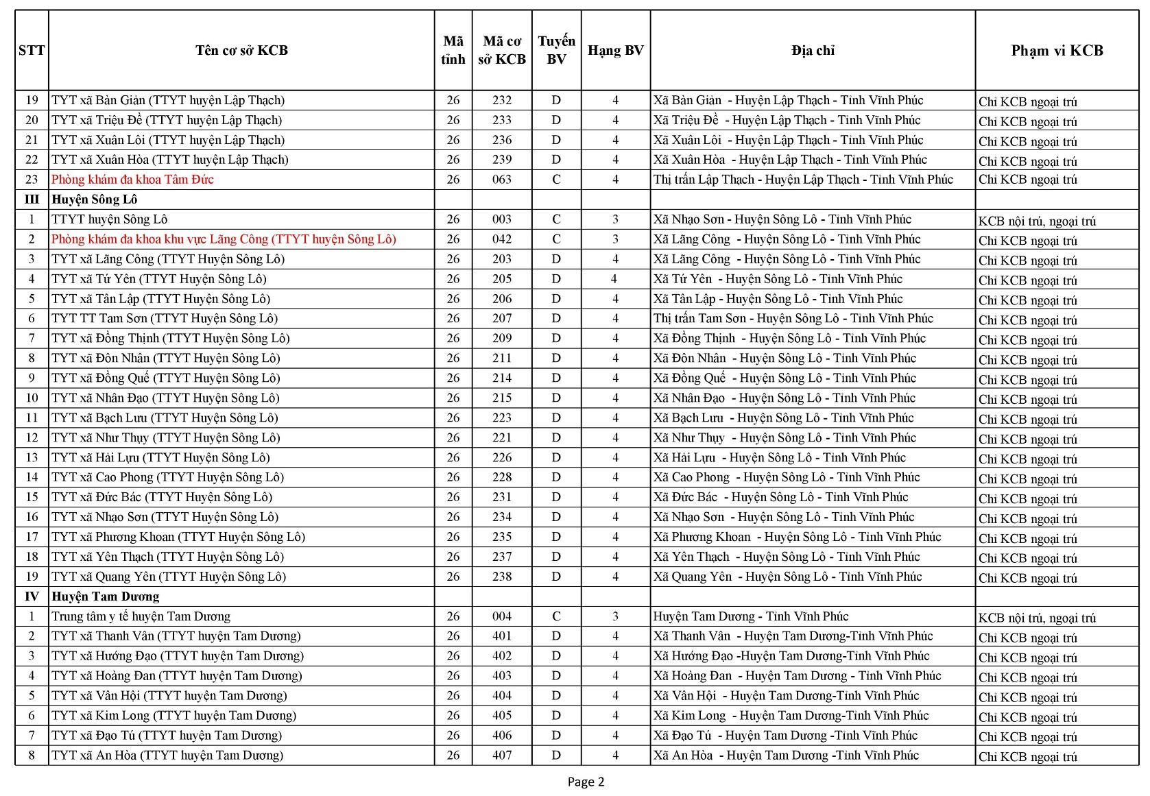 Vĩnh Phúc KCB Ngoại tỉnh năm 2020
